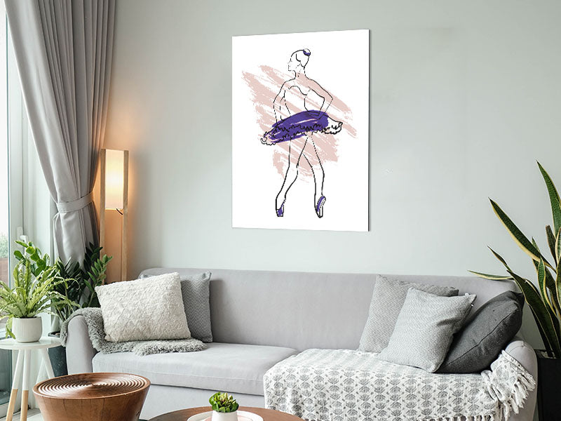 Lila Ballerina 1 Gedruckt auf gebürstetem Aluminium-Dibond. Eine moderne Art, Kunst zu präsentieren und leicht zu pflegen.