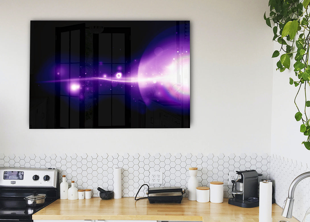 Acryldruck „Purple Galaxy“, UV-gedruckt auf 5 mm dickes Acrylglas. Wird mit allem geliefert, was Sie zum Aufhängen an die Wand brauchen.