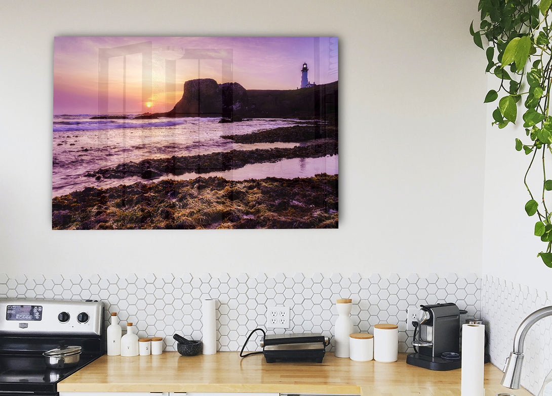 Acryldruck „Purple Lighthouse Watch“, UV-gedruckt auf 5 mm dickes Acrylglas. Wird mit allem geliefert, was Sie zum Aufhängen an die Wand brauchen.