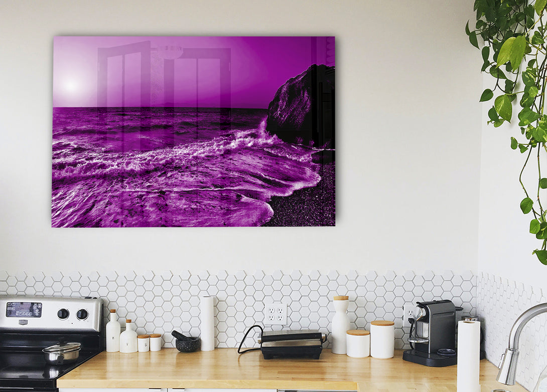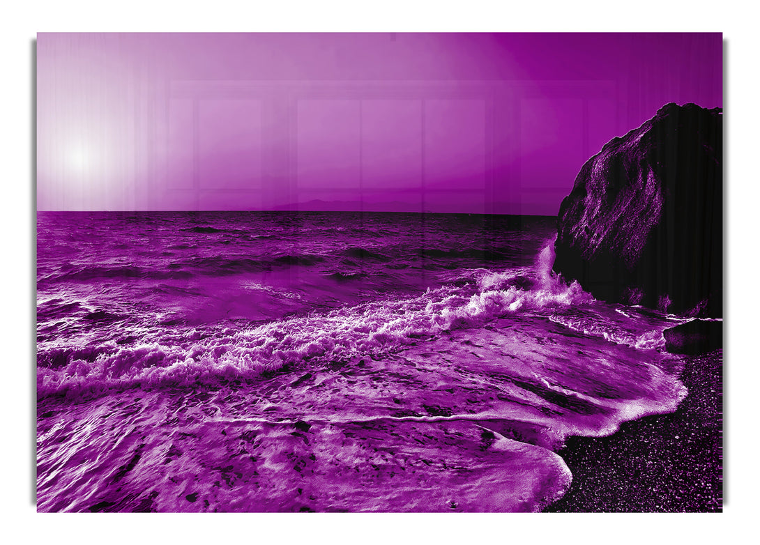 Acryldruck „Purple Ocean Sun“, UV-gedruckt auf 5 mm dickes Acrylglas. Wird mit allem geliefert, was Sie zum Aufhängen an die Wand brauchen.