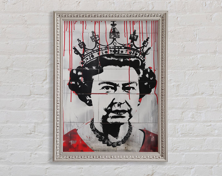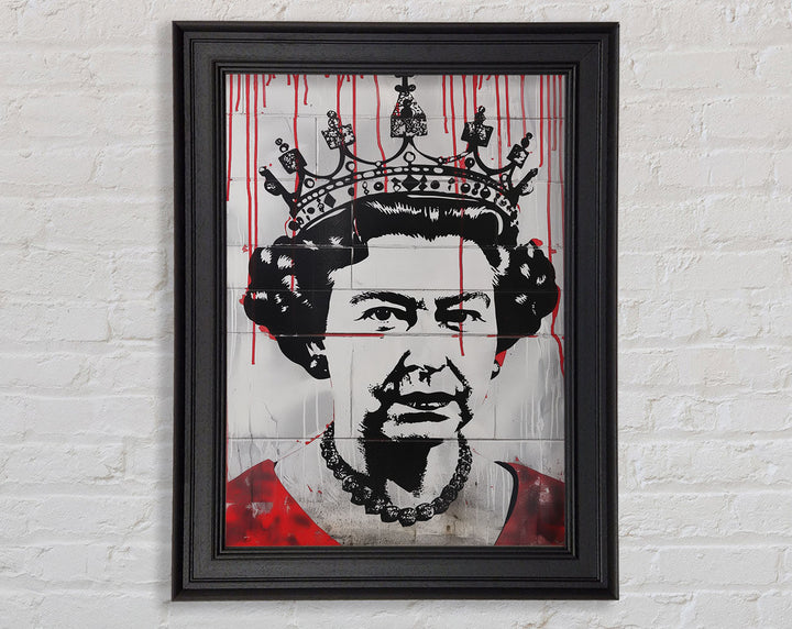 Introducing the Queen Elizabeth Banksy Framed Print, a stunning piece of framed art that combines modern street art with royal elegance. This unique artwork captures the iconic style of Banksy while paying tribute to Queen Elizabeth. Available in six sizes, from small to oversized, you can find the perfect fit for any space. Choose from a variety of colors to match your decor and create a striking focal point in your room. Each framed print is handmade in the United Kingdom, ensuring top-notch craftsmanship and attention to detail. Ready to hang, this piece makes an excellent gift or a stylish addition to your home or office.