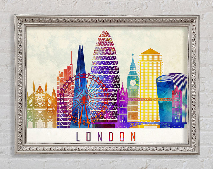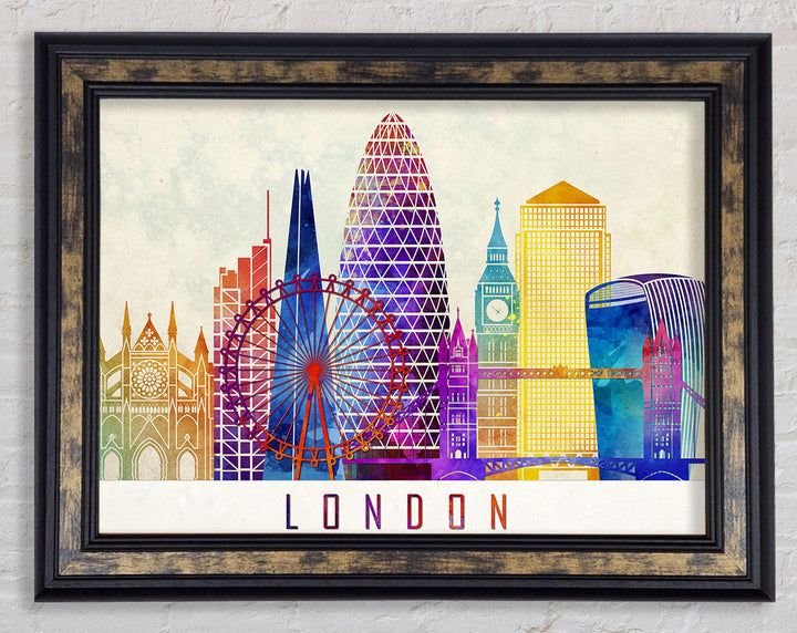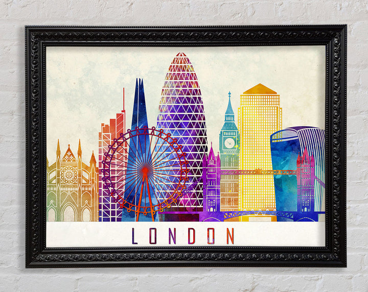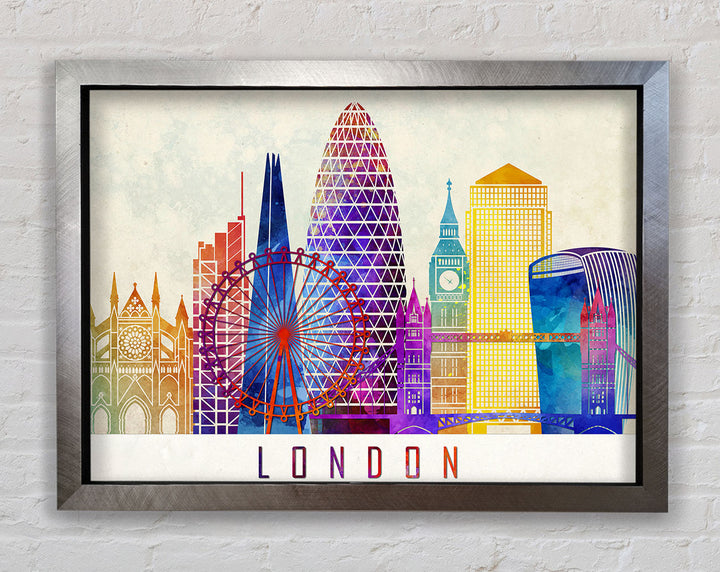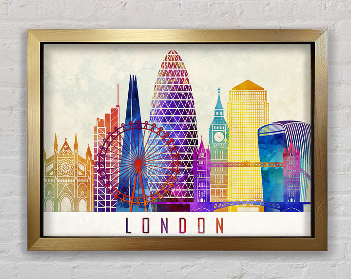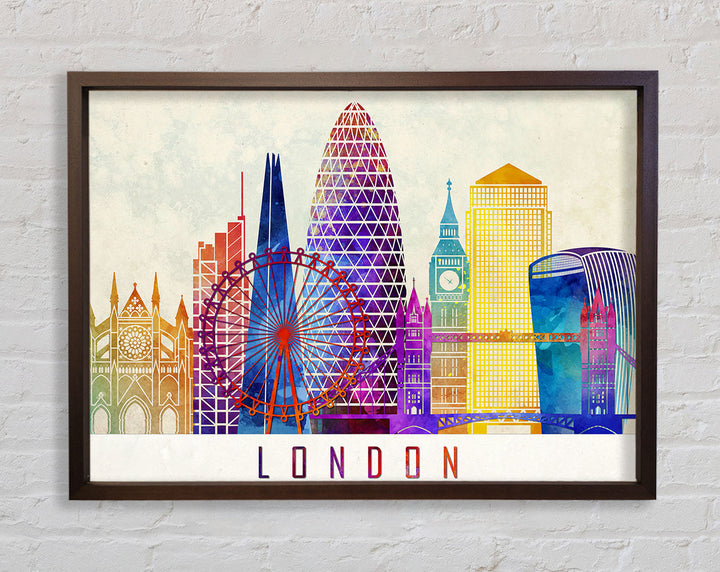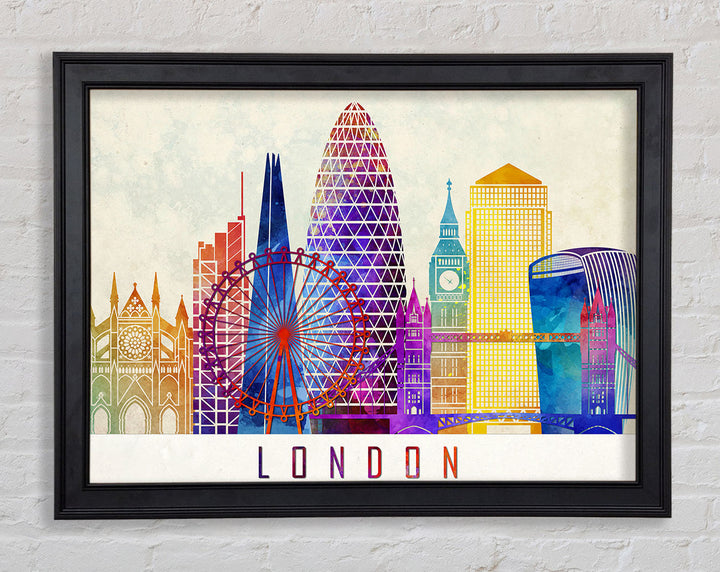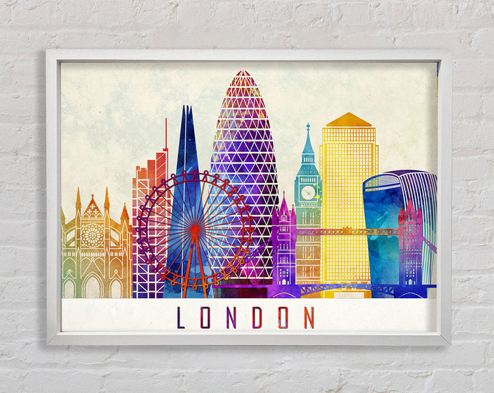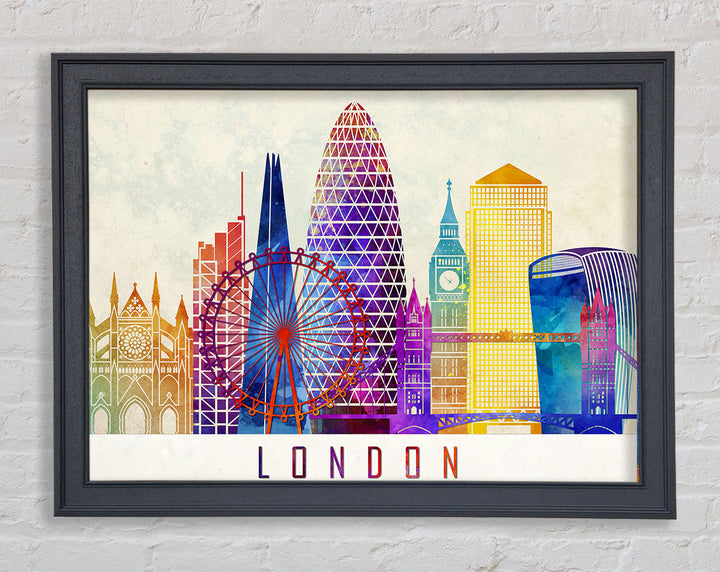 Gerahmter Druck „Rainbow City 2“, erhältlich in mehreren Rahmenfarben. Fertig zum Aufhängen aus der Schachtel und handgefertigt im Vereinigten Königreich.