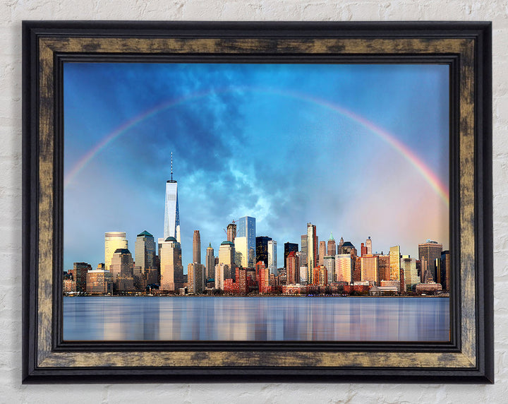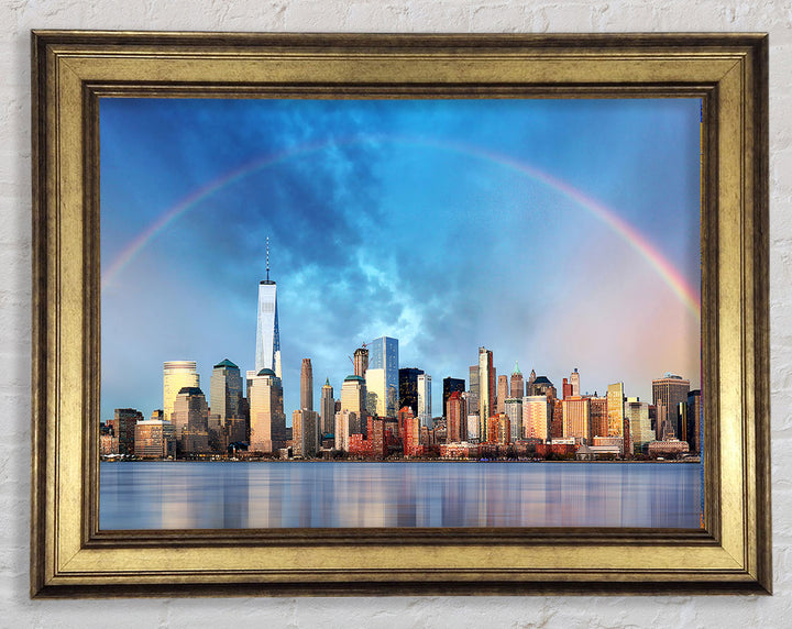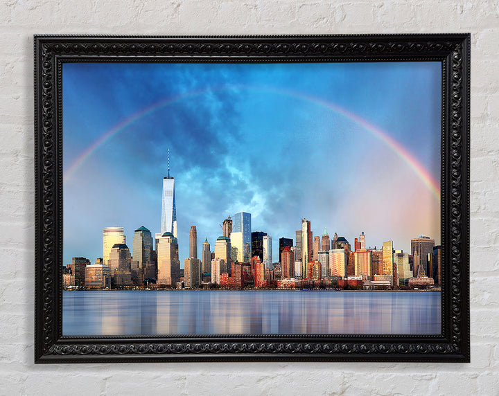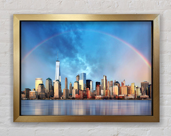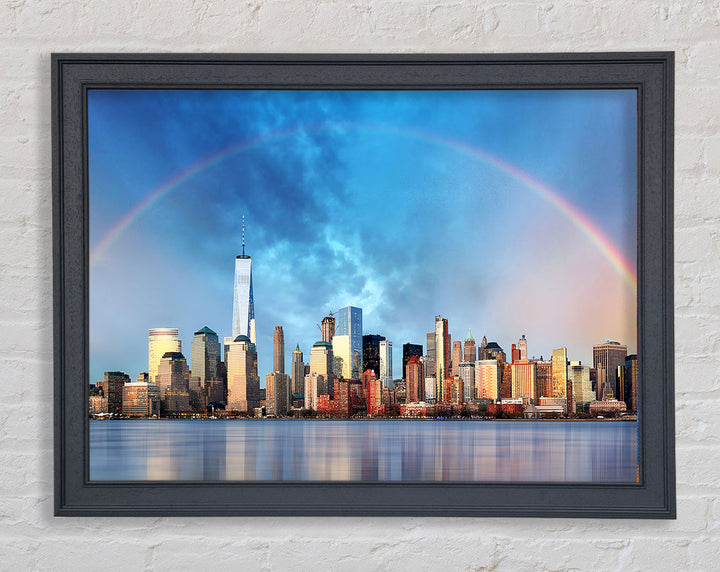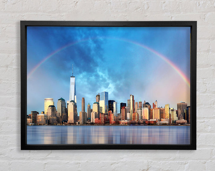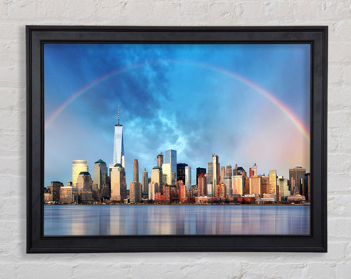 Gerahmter Druck „Rainbow Over The Big Apple“, erhältlich in mehreren Rahmenfarben. Fertig zum Aufhängen aus der Schachtel und handgefertigt im Vereinigten Königreich.