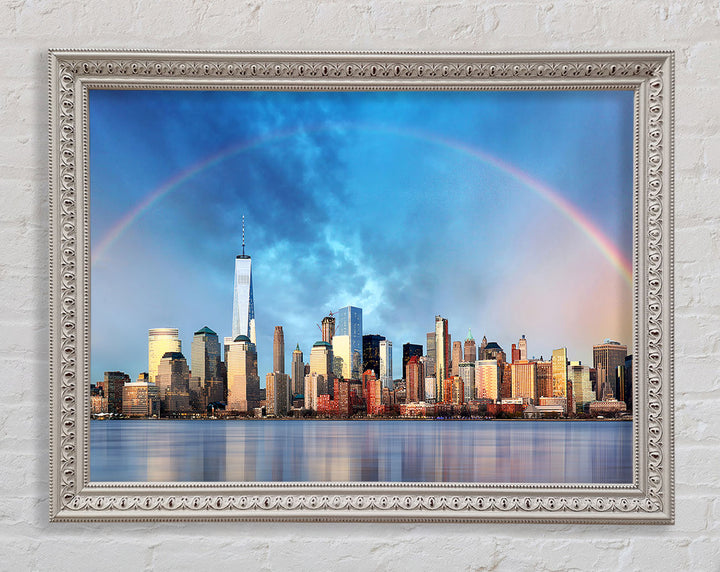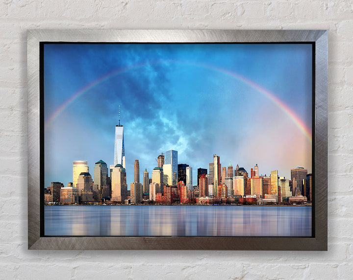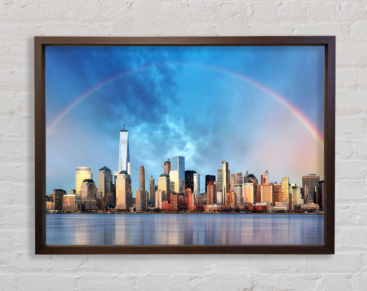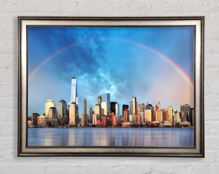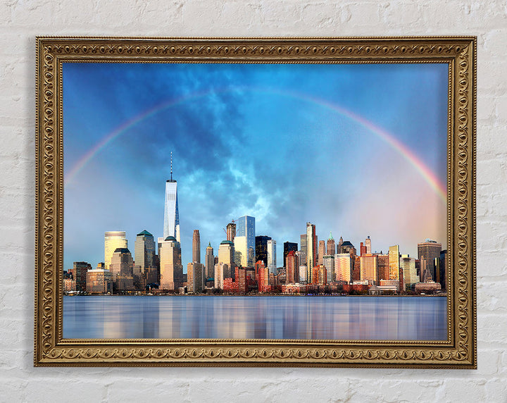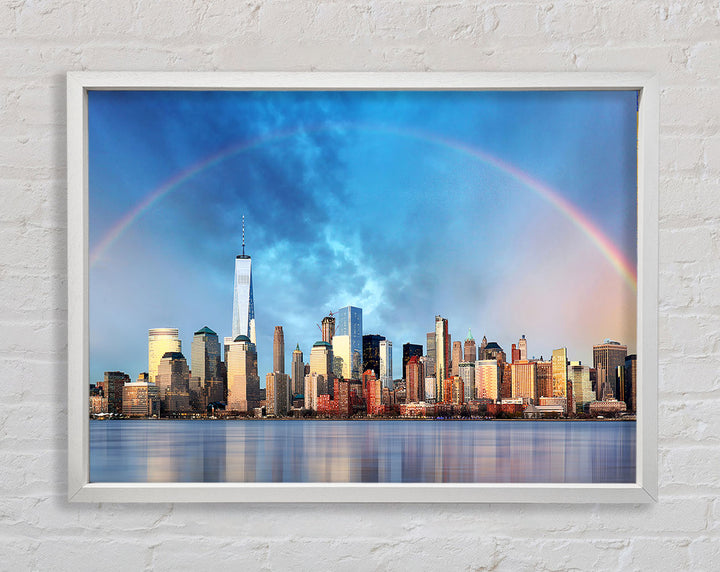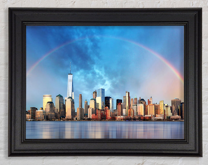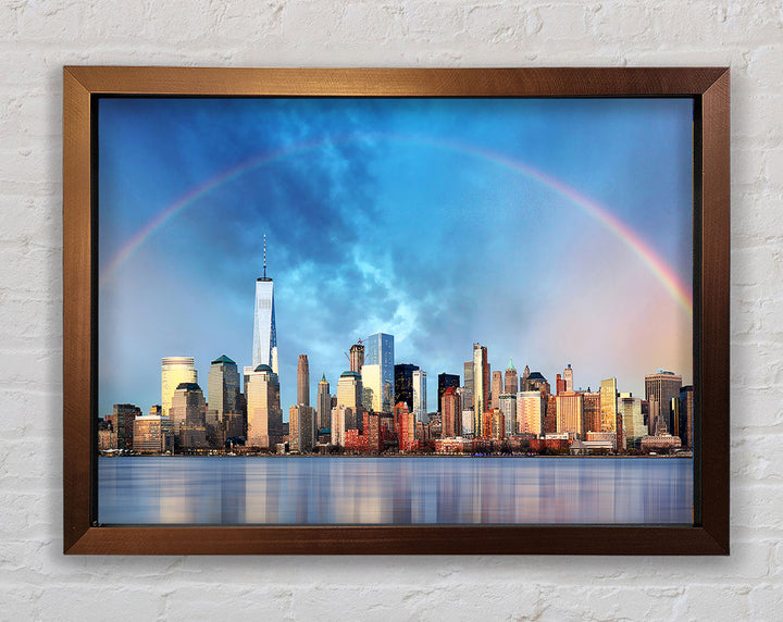 Gerahmter Druck „Rainbow Over The Big Apple“, erhältlich in mehreren Rahmenfarben. Fertig zum Aufhängen aus der Schachtel und handgefertigt im Vereinigten Königreich.