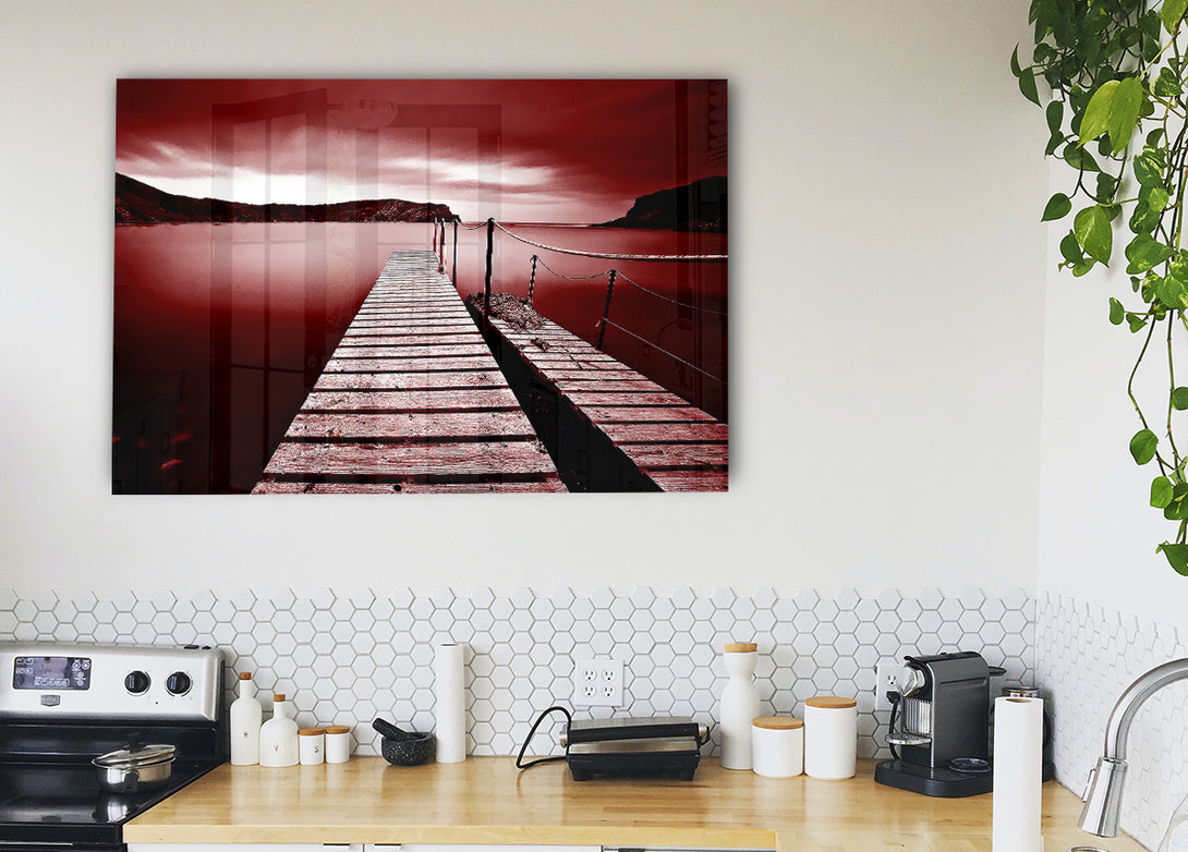 Acryldruck „Red Abstract Pier“, UV-gedruckt auf 5 mm dickes Acrylglas. Wird mit allem geliefert, was Sie zum Aufhängen an die Wand benötigen.