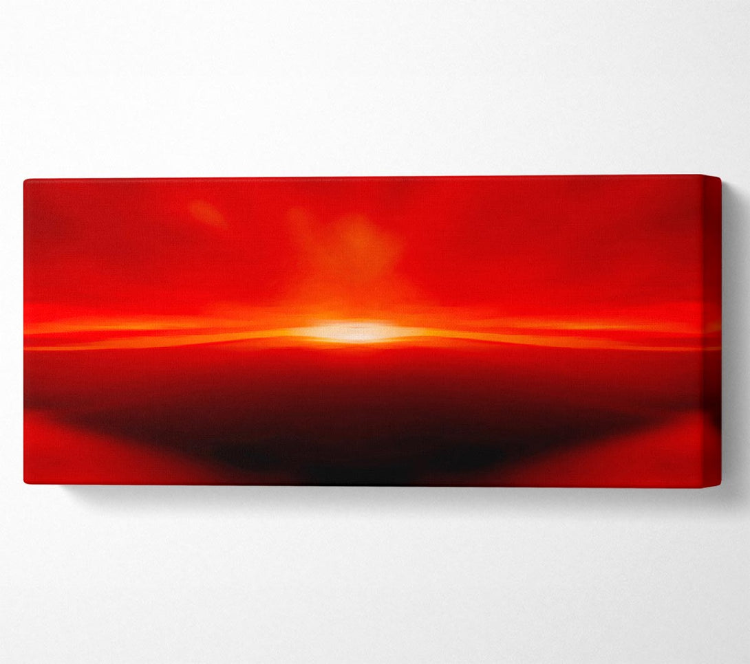 Rote abstrakte Sunblaze-Leinwand, gedruckt auf beschichteter Polyester-Leinwand. Auf einem 44 mm großen Kastenrahmen montiert, fertig zum Aufhängen.