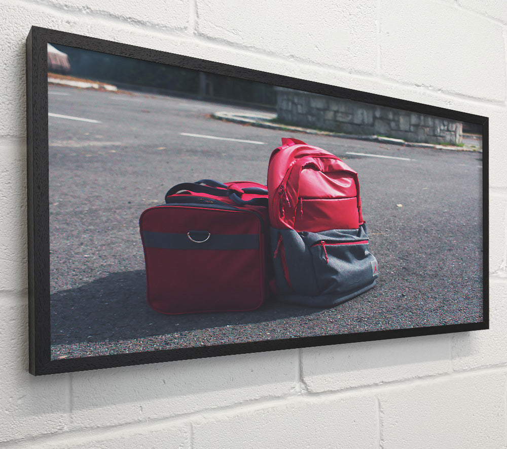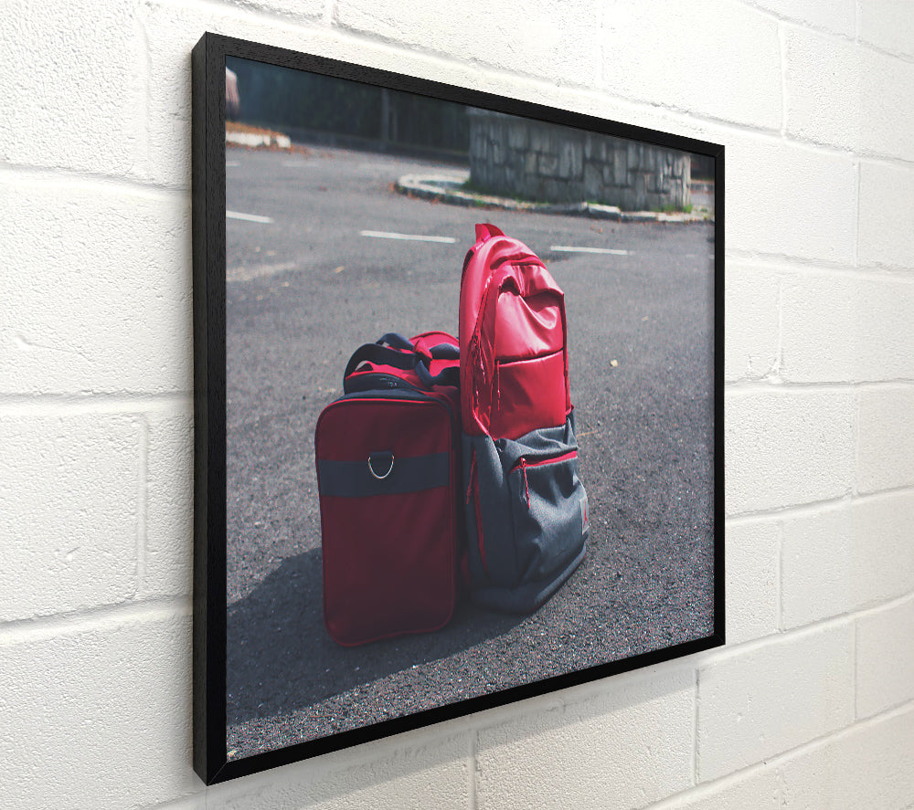 Red Bags On Asphalt