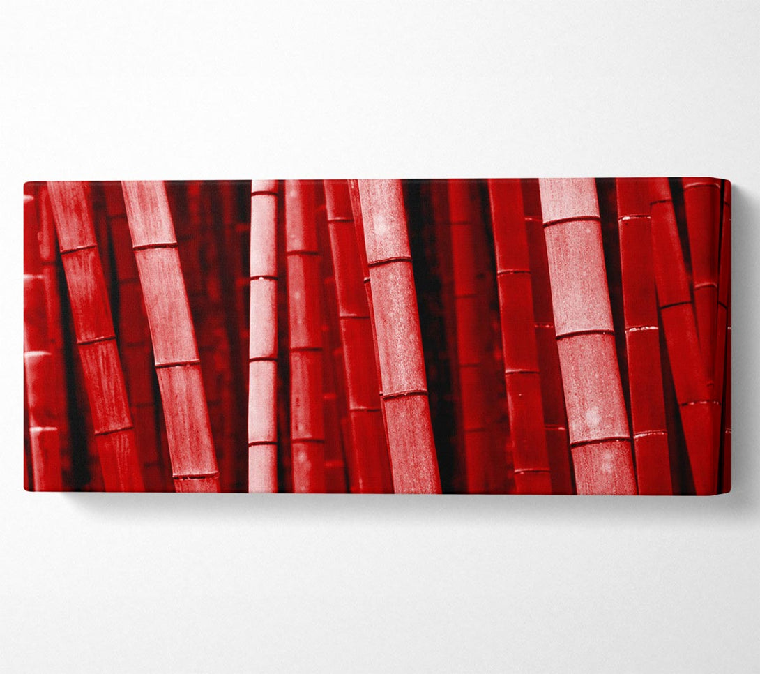 Rote Bambus-Leinwand, gedruckt auf beschichteter Polyester-Leinwand. Auf einem 44 mm großen Kastenrahmen montiert, fertig zum Aufhängen.