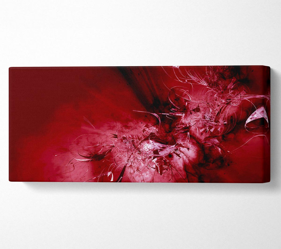 Rotes zerbrochenes Glas-Leinwandbild, gedruckt auf beschichteter Polyester-Leinwand. Auf einem 44 mm großen Kastenrahmen montiert, fertig zum Aufhängen.