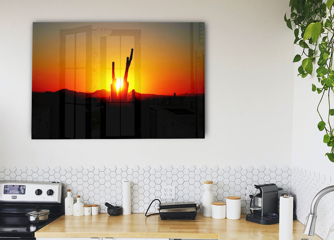 Acryldruck „Red Cactus Sunrise“, UV-gedruckt auf 5 mm dickes Acrylglas. Wird mit allem geliefert, was Sie zum Aufhängen an Ihre Wand benötigen.