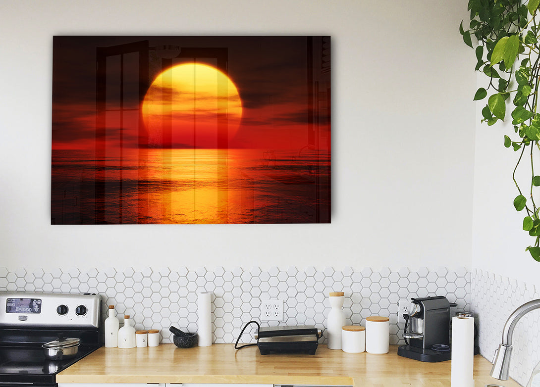 Acryldruck „Red Fire Sky Reflections“, UV-gedruckt auf 5 mm dickes Acrylglas. Wird mit allem geliefert, was Sie zum Aufhängen an die Wand brauchen.