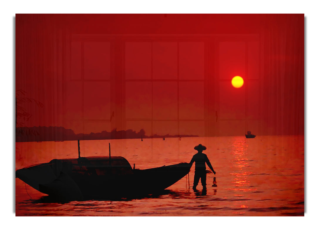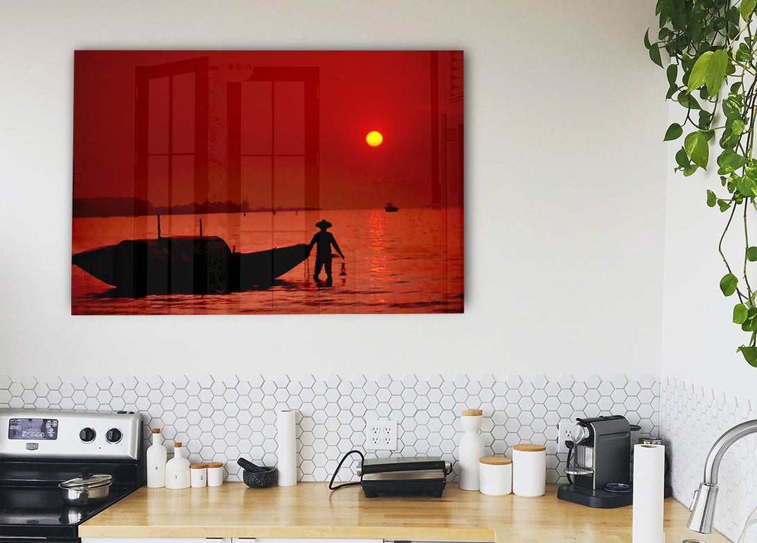 Acryldruck „Red Fishermans Ocean“, UV-gedruckt auf 5 mm dickes Acrylglas. Wird mit allem geliefert, was Sie zum Aufhängen an die Wand brauchen.