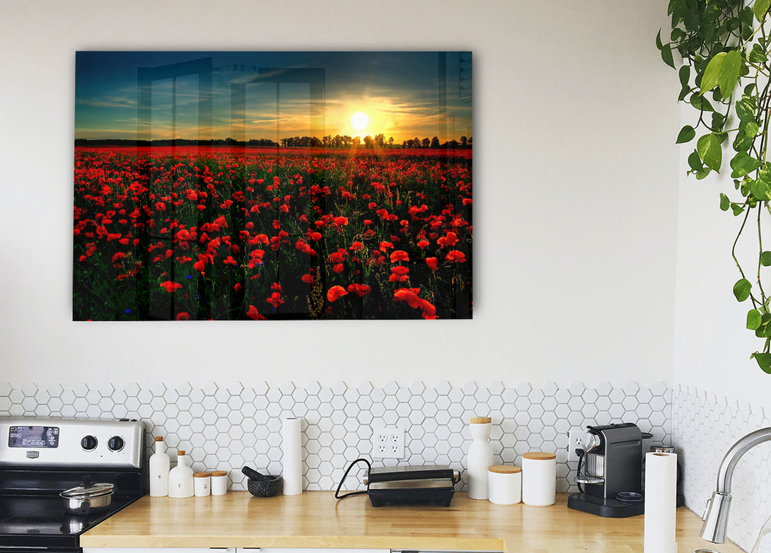 Acryldruck „Red Flower Garden“, UV-gedruckt auf 5 mm dickes Acrylglas. Wird mit allem geliefert, was Sie zum Aufhängen an die Wand brauchen.