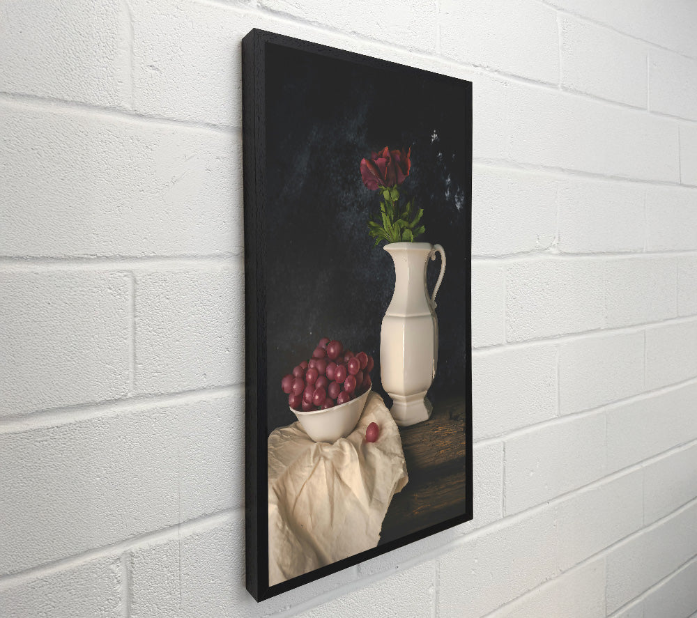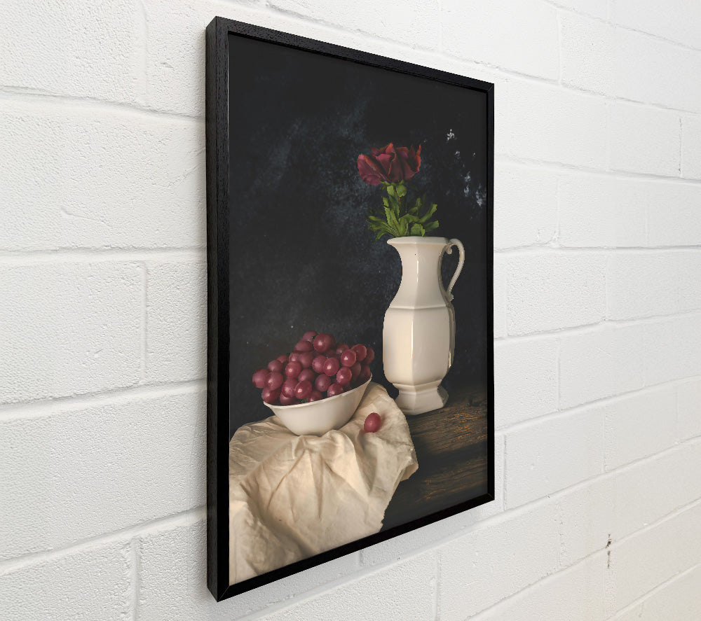 Red Grapes And White Vase