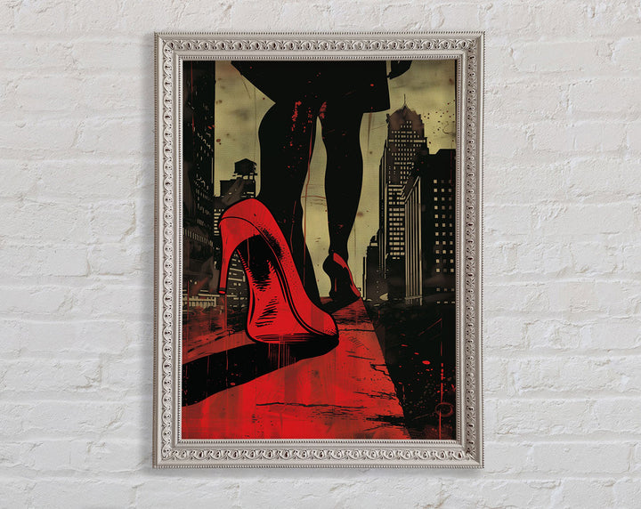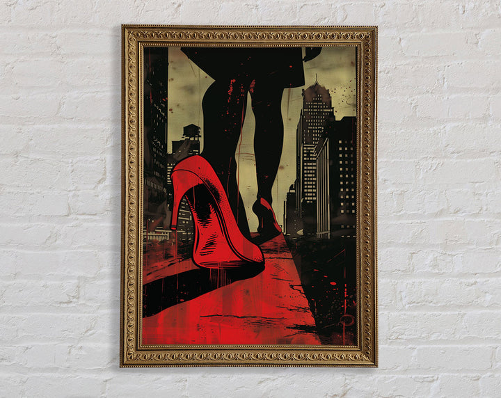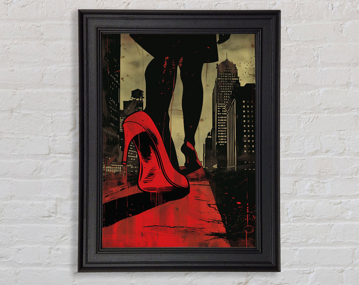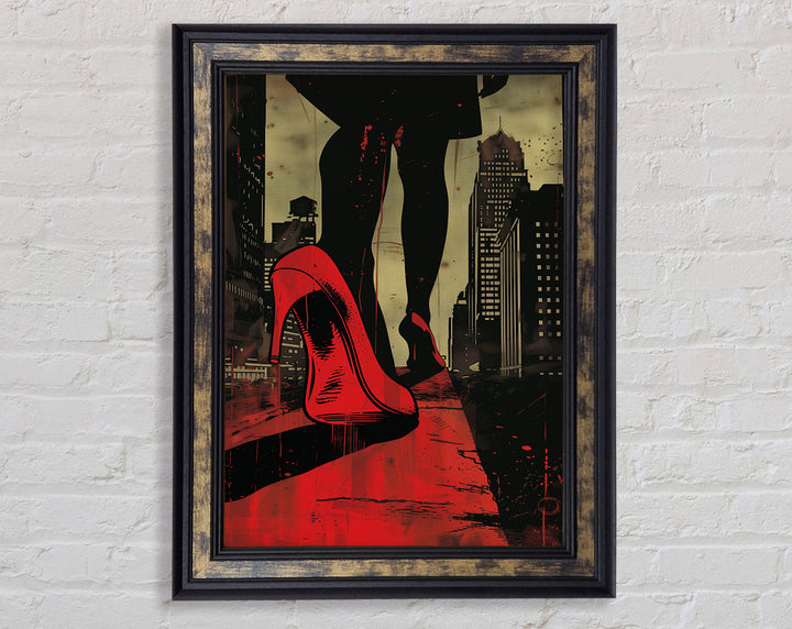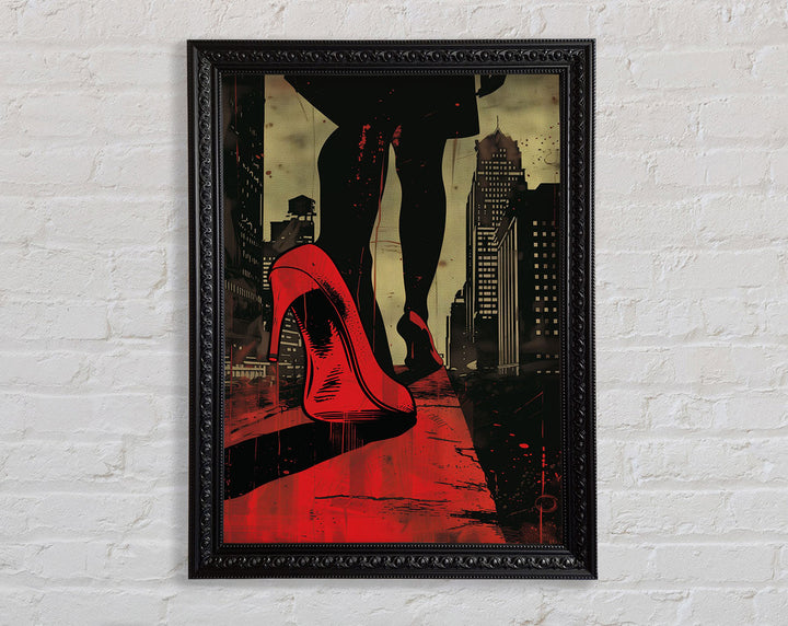 Introducing the "Red Heels In A Dark City" framed print, a stunning piece of framed art that adds a touch of elegance to any room. This captivating artwork features a pair of striking red heels set against a moody urban backdrop, creating a perfect blend of boldness and mystery. Available in six sizes, from small to oversized, you can find the perfect fit for your space. With a variety of frame colours to choose from, this handmade piece complements any décor. Ready to hang, it offers an effortless way to elevate your home or office. Each print is meticulously crafted in the United Kingdom, ensuring top-notch quality and attention to detail. Make a statement with this beautiful framed art today!