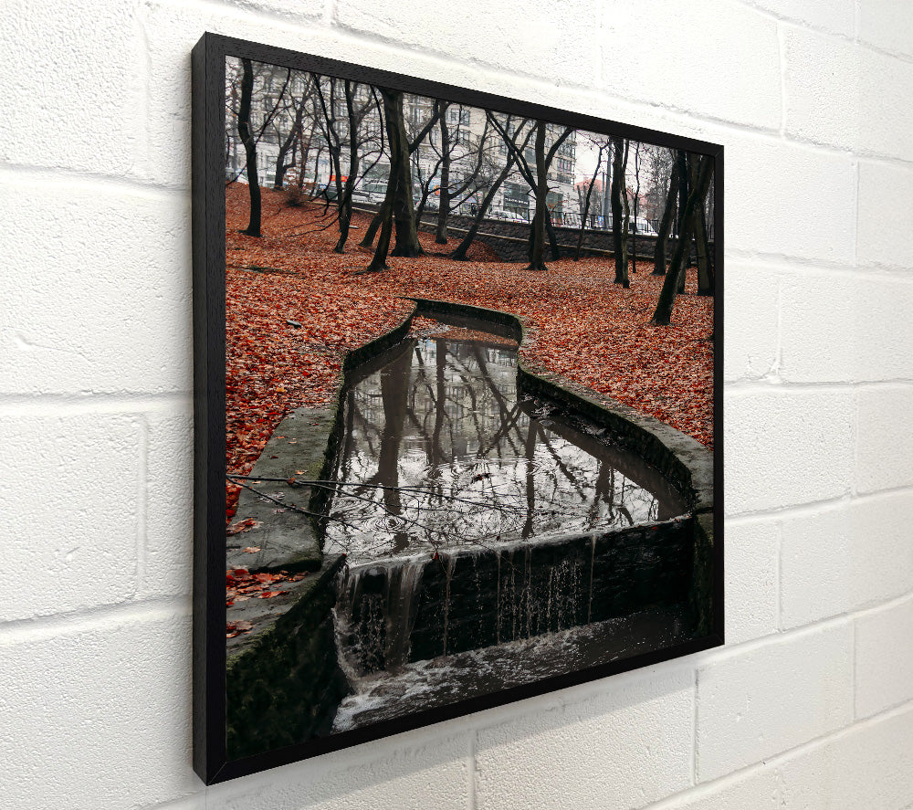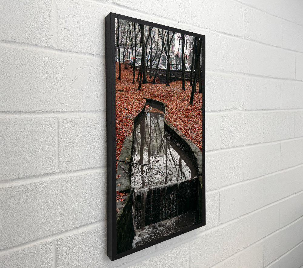 Red Leaves And Waterfall