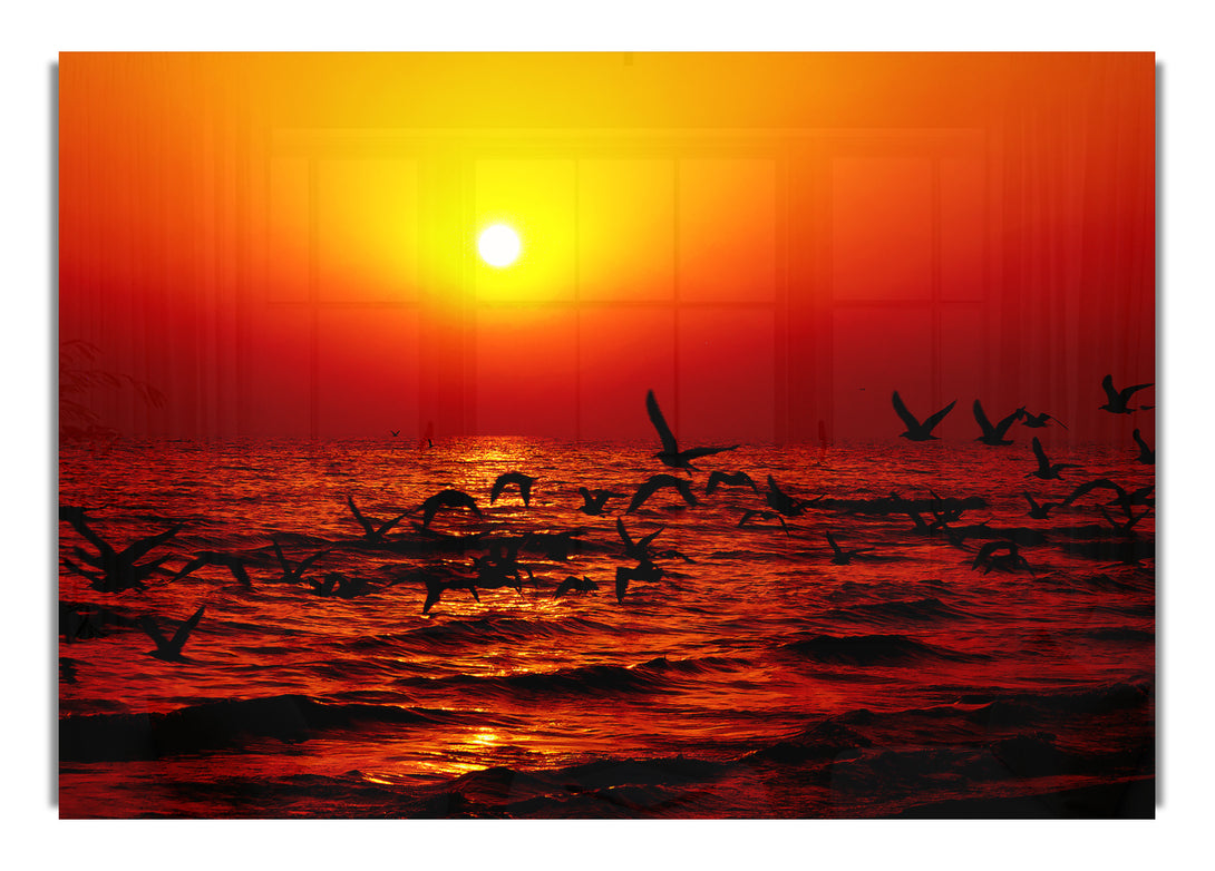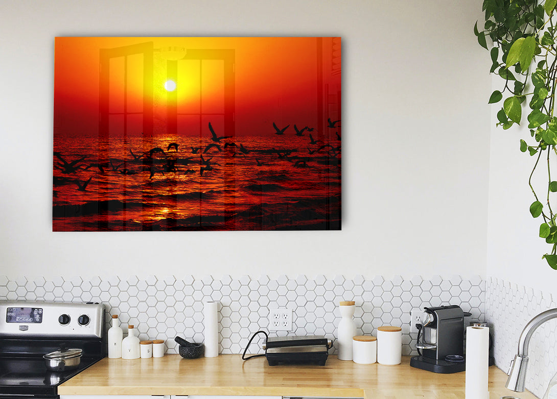 Acryldruck „Red Ocean Flight“, UV-gedruckt auf 5 mm dickes Acrylglas. Wird mit allem geliefert, was Sie zum Aufhängen an die Wand brauchen.