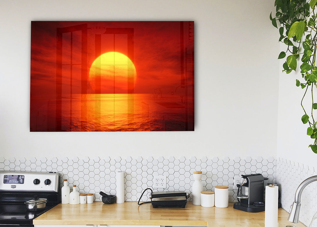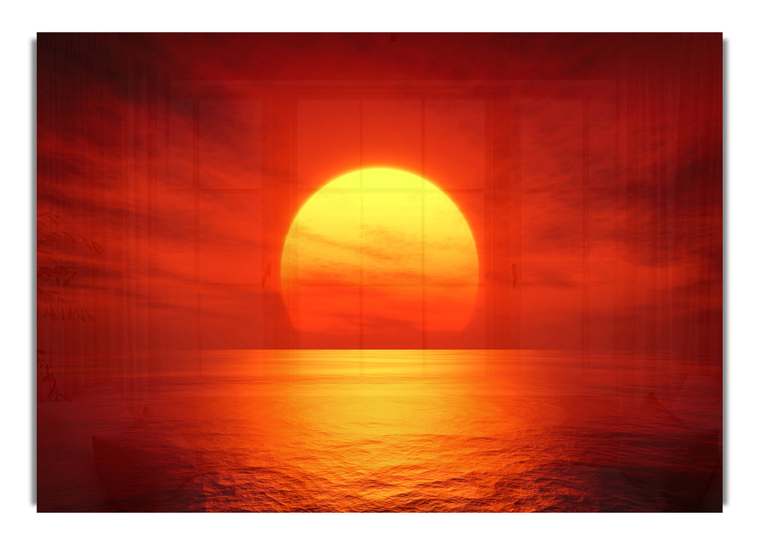 Red Ocean Glow-Acryldruck, UV-gedruckt auf 5 mm dickes Acrylglas. Wird mit allem geliefert, was Sie zum Aufhängen an Ihre Wand benötigen.
