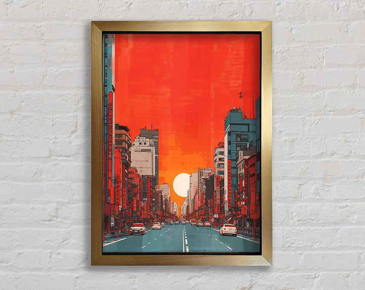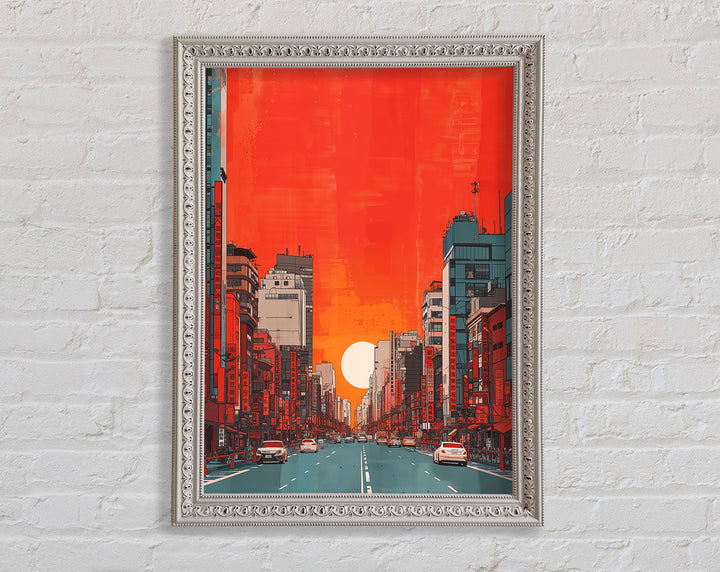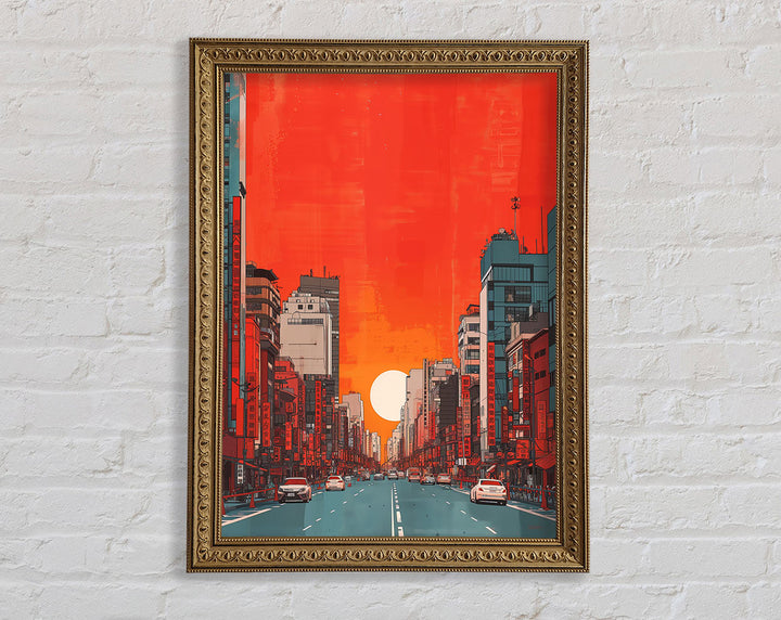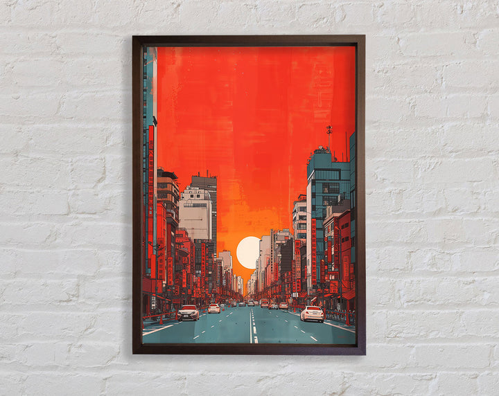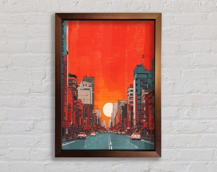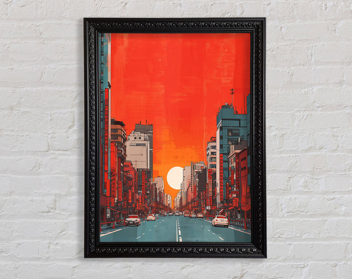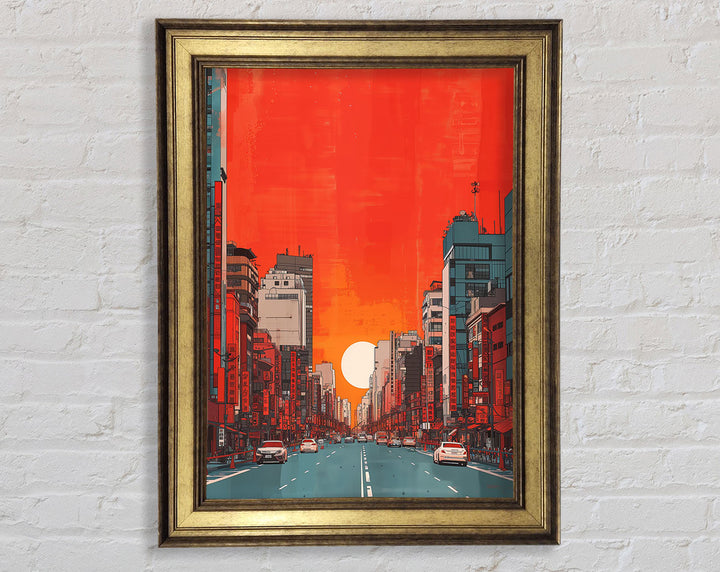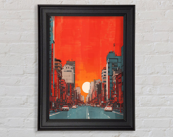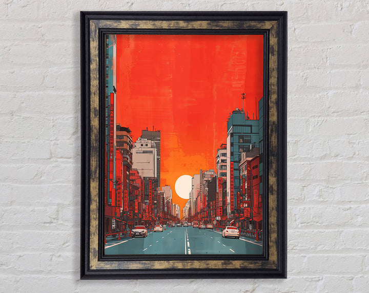 Red Orange Sunset Scyscraper Framed Print