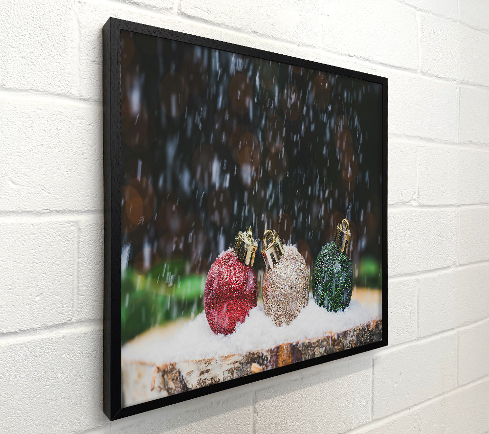 Red Ornaments In Snow