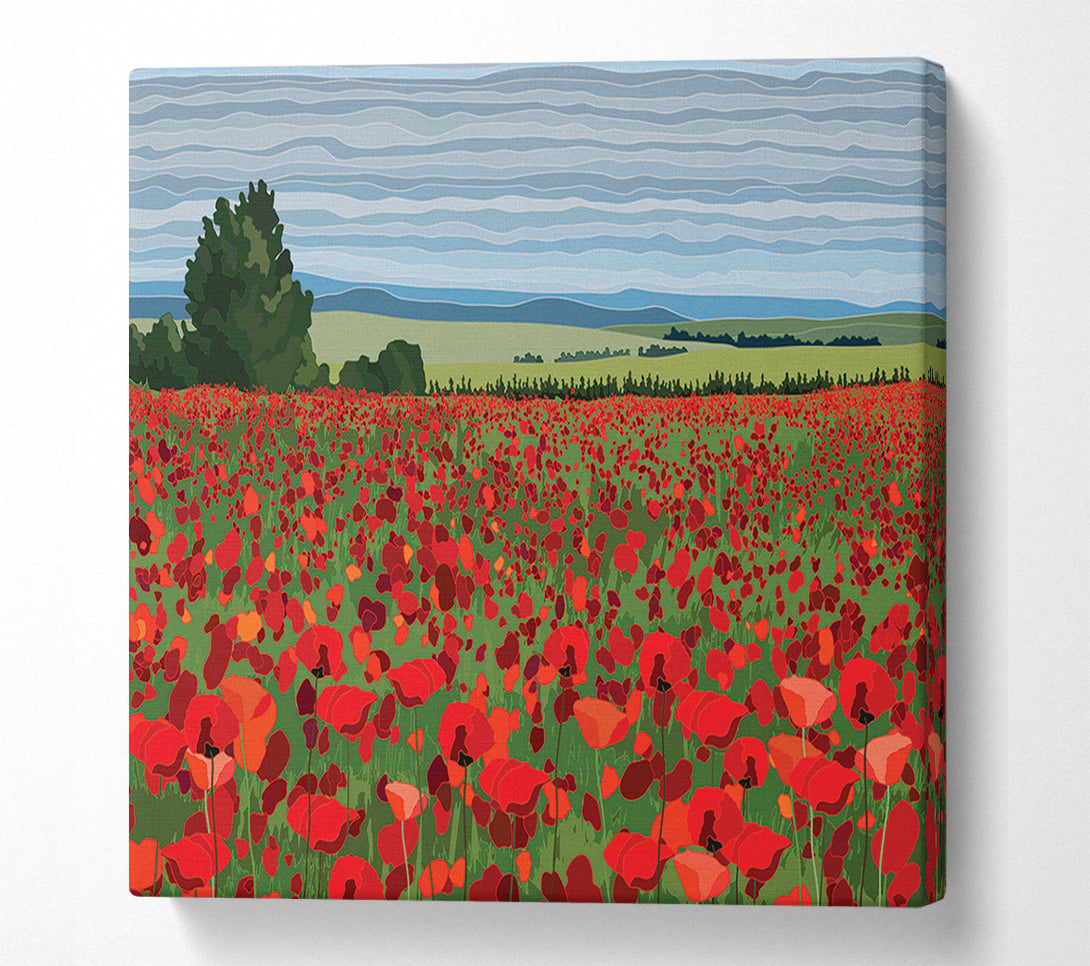 Leinwandbild „Rote Mohnblumen auf dem Feld“, gedruckt auf beschichteter Polyester-Leinwand. Auf einem 44 mm großen Kastenrahmen montiert, fertig zum Aufhängen.