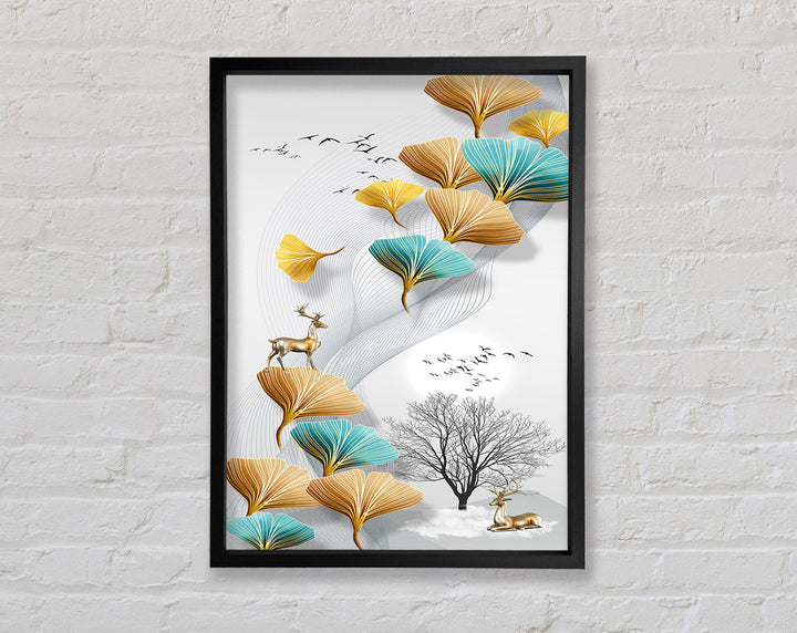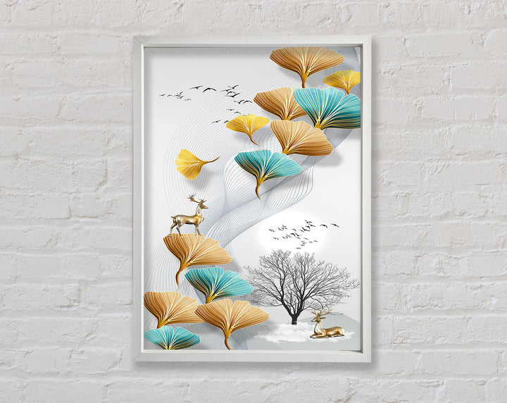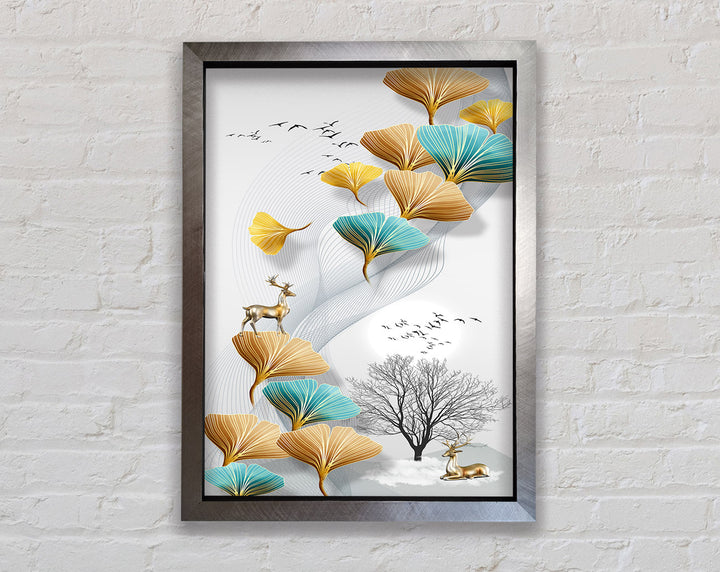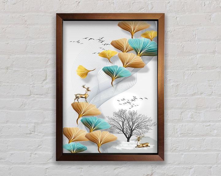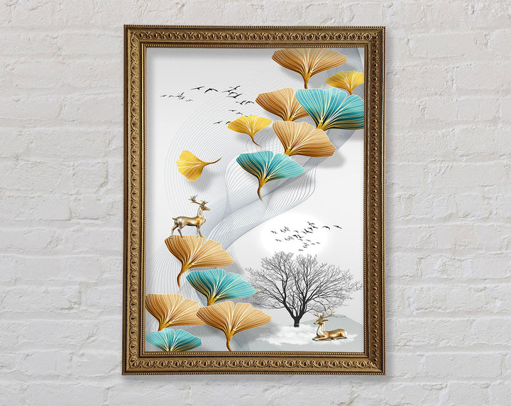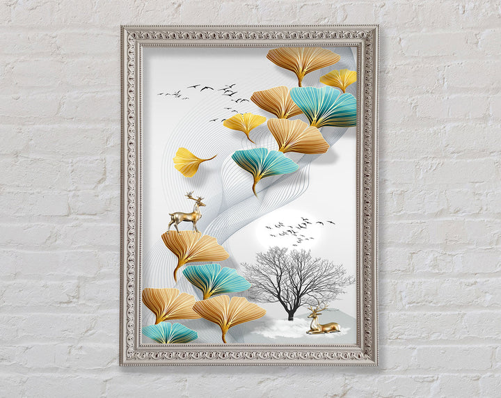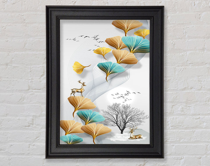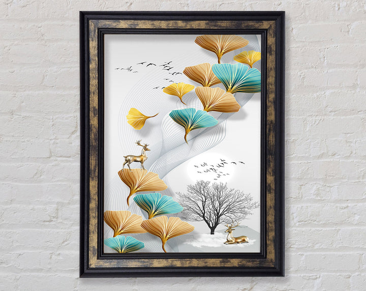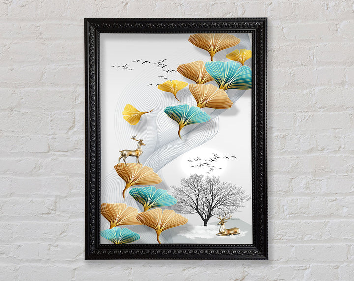 Reindeers On Leaves And Tree Framed Print