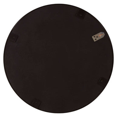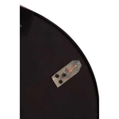 This attractive and high-quality round wall mirror features a warm metallic tile, black iron frame and rich petrified wood graining that creates a distinctive pattern.