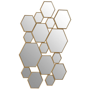 Each hexagonal frame is crafted from slim iron and has a reflective gold finish. Their different sizes produce an eye-catching array, ideal for adding extra light and creating a sense of space in interiors.