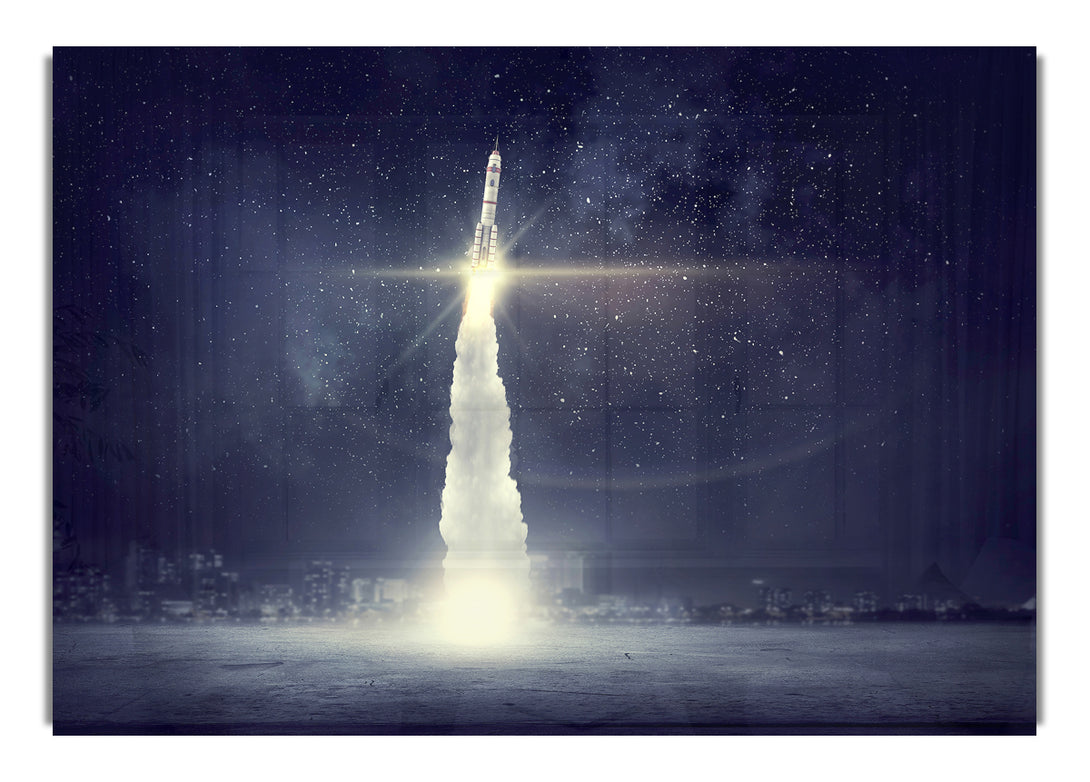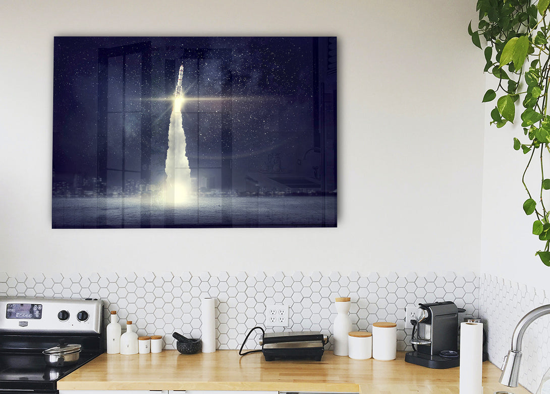 Rocket Skies-Acryldruck, UV-gedruckt auf 5 mm dickes Acrylglas. Wird mit allem geliefert, was Sie zum Aufhängen an die Wand brauchen.