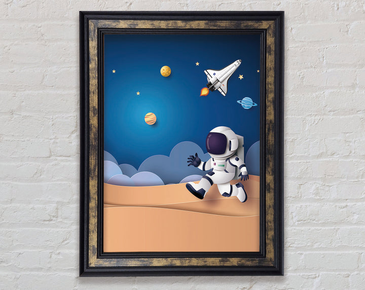 Introducing the Running On The Moon Framed Print, a stunning piece of framed art that will elevate any space. This unique artwork captures the imagination with its whimsical design, depicting a surreal scene of running on the moon. Available in six sizes, from small to oversized, it caters to every room and need. Choose from a variety of colors to perfectly match your decor. Each print is handmade in the United Kingdom, ensuring top-notch craftsmanship and attention to detail. Ready to hang, this framed art makes decorating easy and stylish. Bring a touch of magic and creativity into your home with the Running On The Moon Framed Print.
