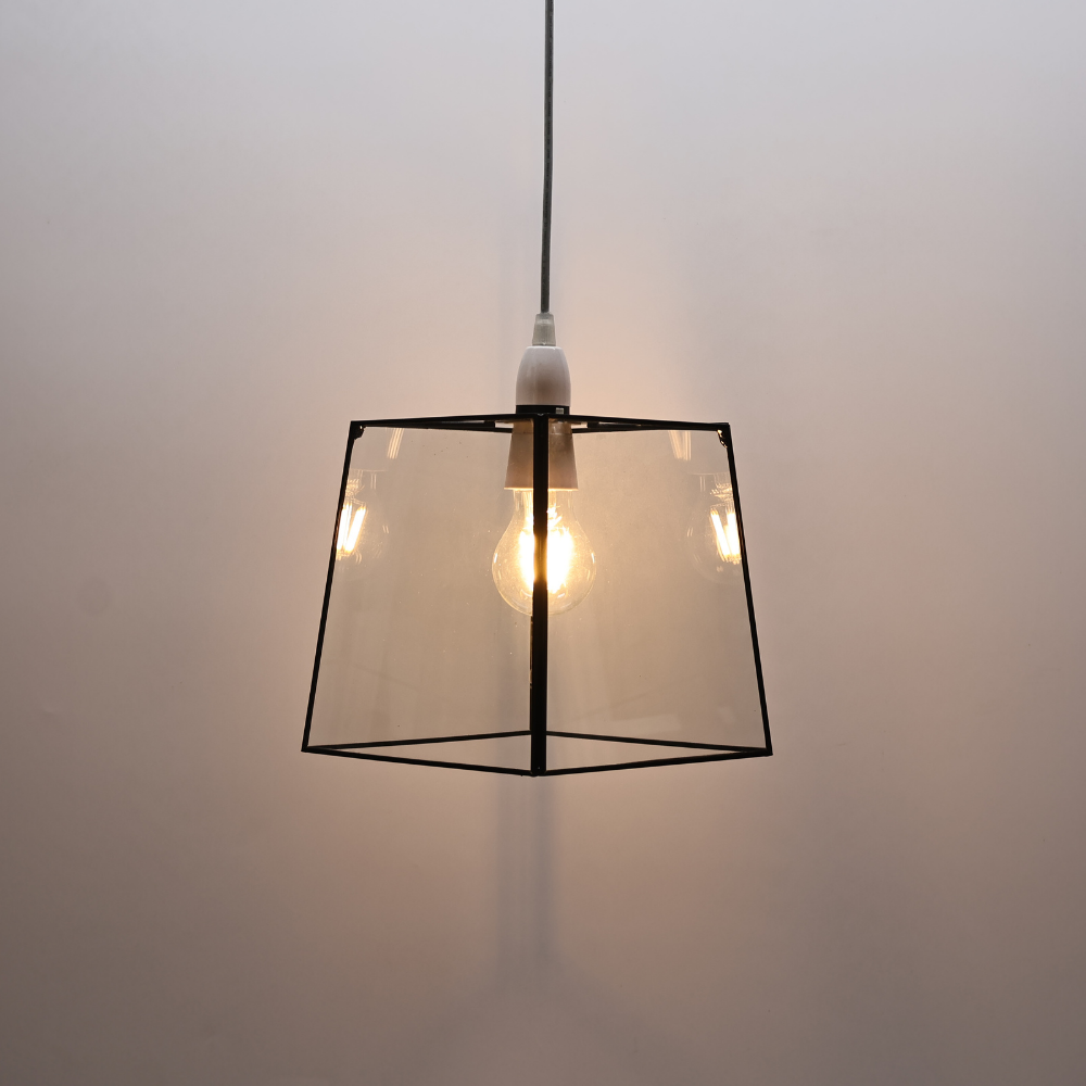 The easy-fit design allows for quick installation over your existing bulb fitting, making it a perfect upgrade for any room. Its clean lines and minimalist shape bring a modern touch, while the transparent panels beautifully showcase decorative filament bulbs.