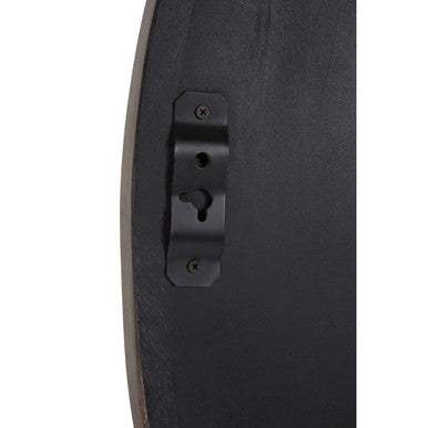 Its round, segmented frame is made from sustainable mango woor and has a deep brown colour. Lines of iron offer a material counter to the wood, but have an antique brass colour that complements.