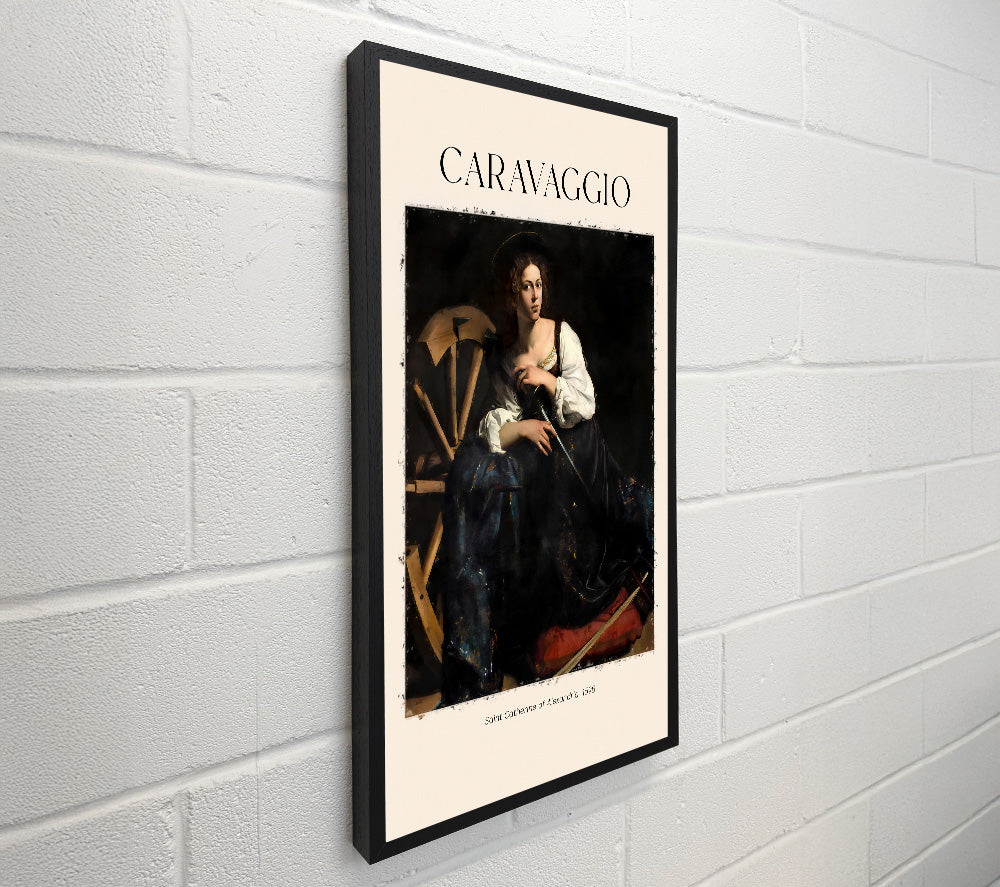 Die Heilige Katharina von Alexandrien, 1598, von Caravaggiocanvas, quadratische Leinwand, gedruckt auf beschichteter Polyester-Leinwand. Auf einem 44 mm breiten Kastenrahmen montiert, fertig zum Aufhängen.