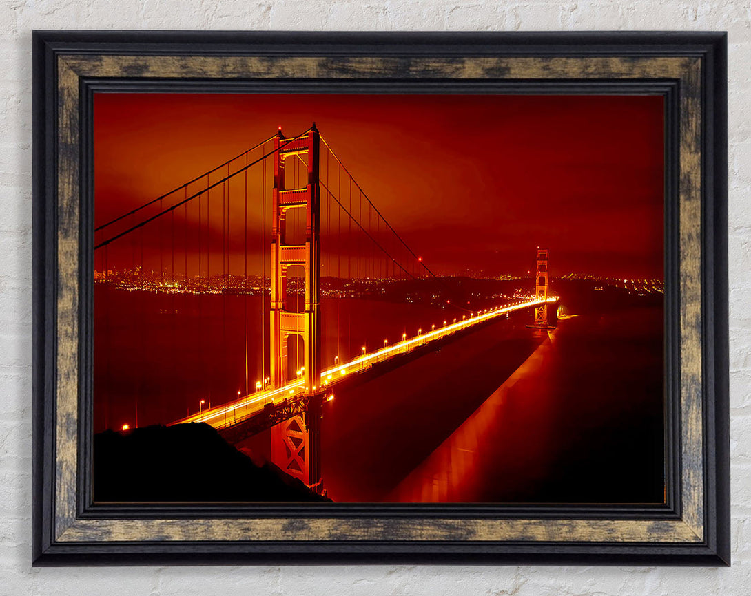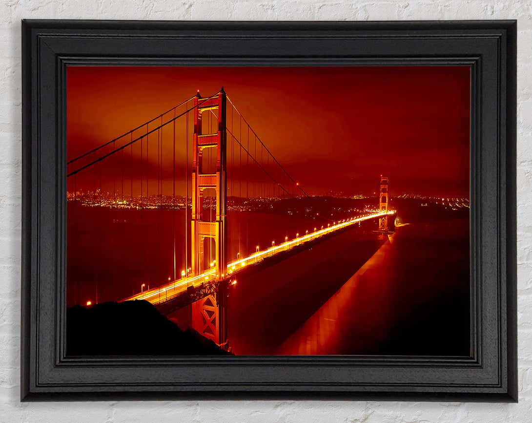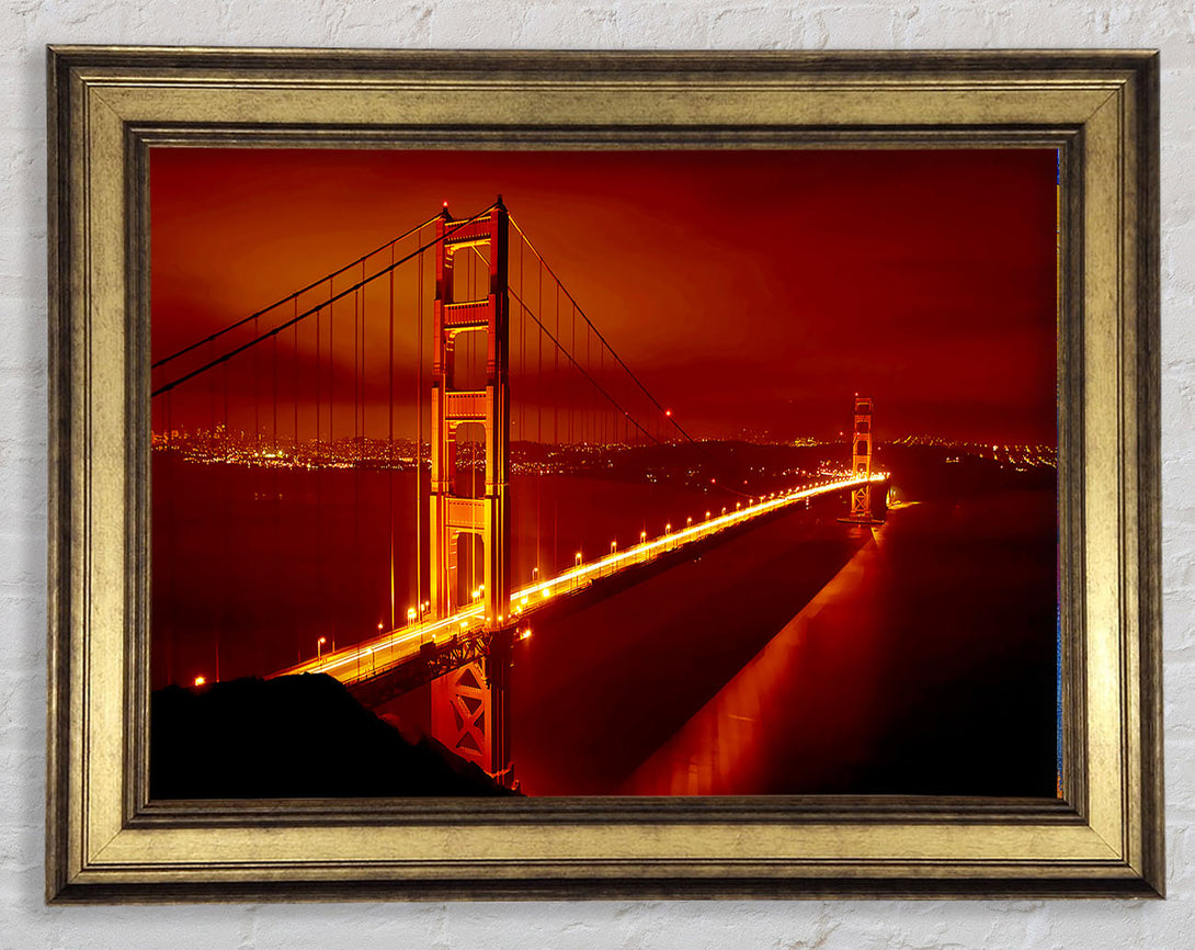 San Francisco Golden Gate Bridge Red Glow Framed Print