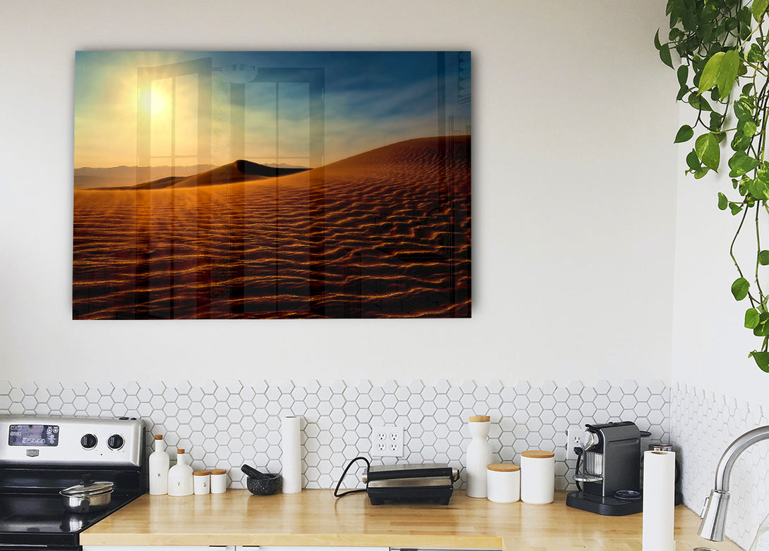 Sand Wind-Acryldruck, UV-gedruckt auf 5 mm dickes Acrylglas. Wird mit allem geliefert, was Sie zum Aufhängen an Ihrer Wand benötigen.