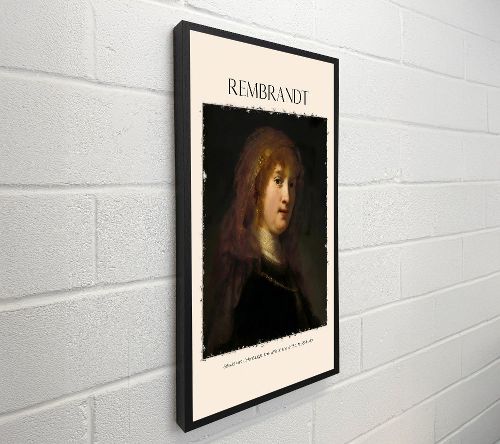 Quadratische Leinwand „Saskia Van Uylenburgh“ von Rembrandtcanvas, gedruckt auf beschichteter Polyester-Leinwand. Auf einem 44 mm großen Rahmen montiert, fertig zum Aufhängen.
