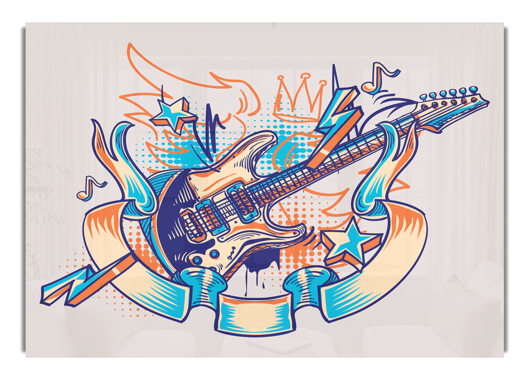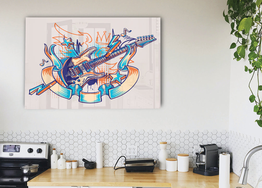 Acryldruck „Shredder Guitar Zeros And Ones“, UV-gedruckt auf 5 mm dickes Acrylglas. Wird mit allem geliefert, was Sie zum Aufhängen an die Wand brauchen.