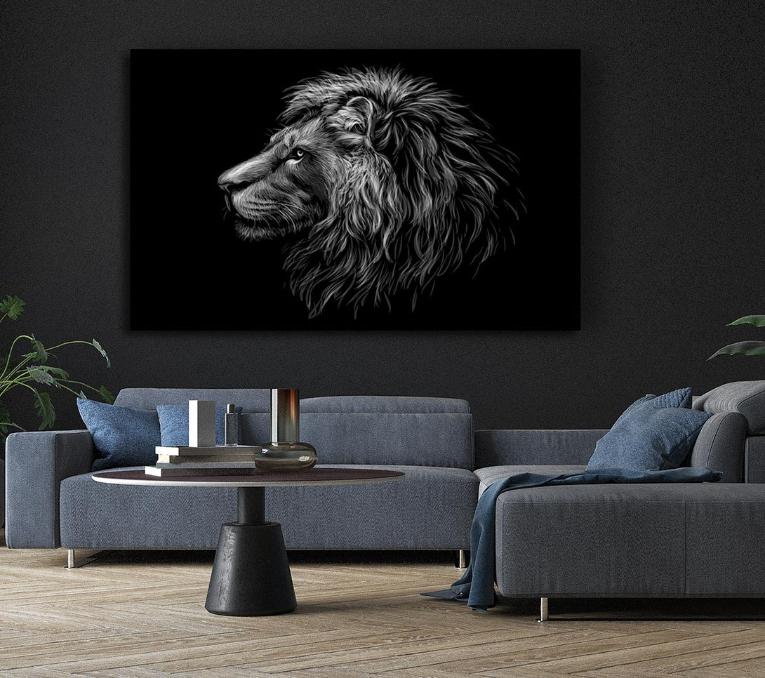Seitenansicht des Löwen auf Leinwand, gedruckt auf beschichteter Polyester-Leinwand. Auf einem 44 mm großen Kastenrahmen montiert, fertig zum Aufhängen.