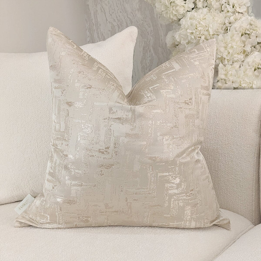 Sorrel Cream & Gold Metallic Abstract Patterned Cushion - 50x50cm