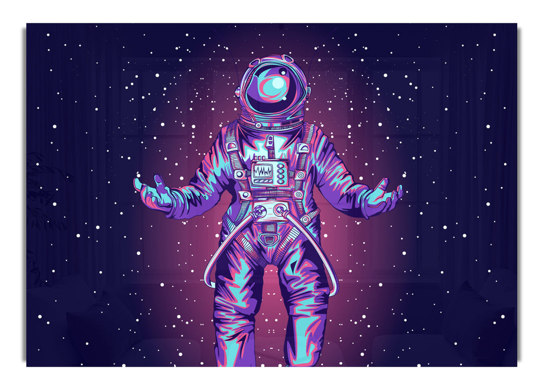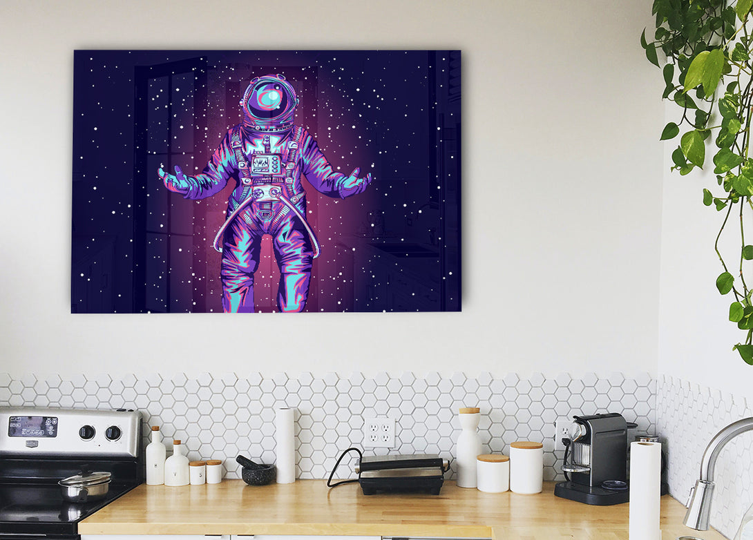 Spaceman Star Purple-Acryldruck, UV-gedruckt auf 5 mm dickes Acrylglas. Wird mit allem geliefert, was Sie zum Aufhängen an Ihre Wand benötigen.