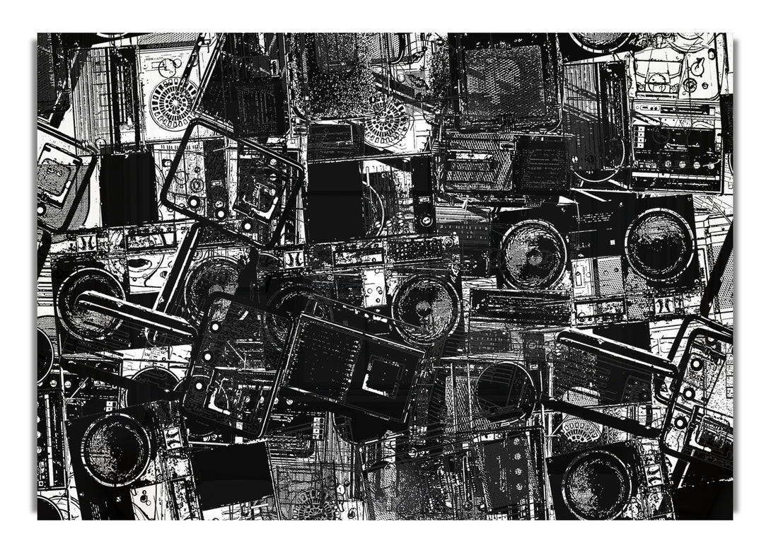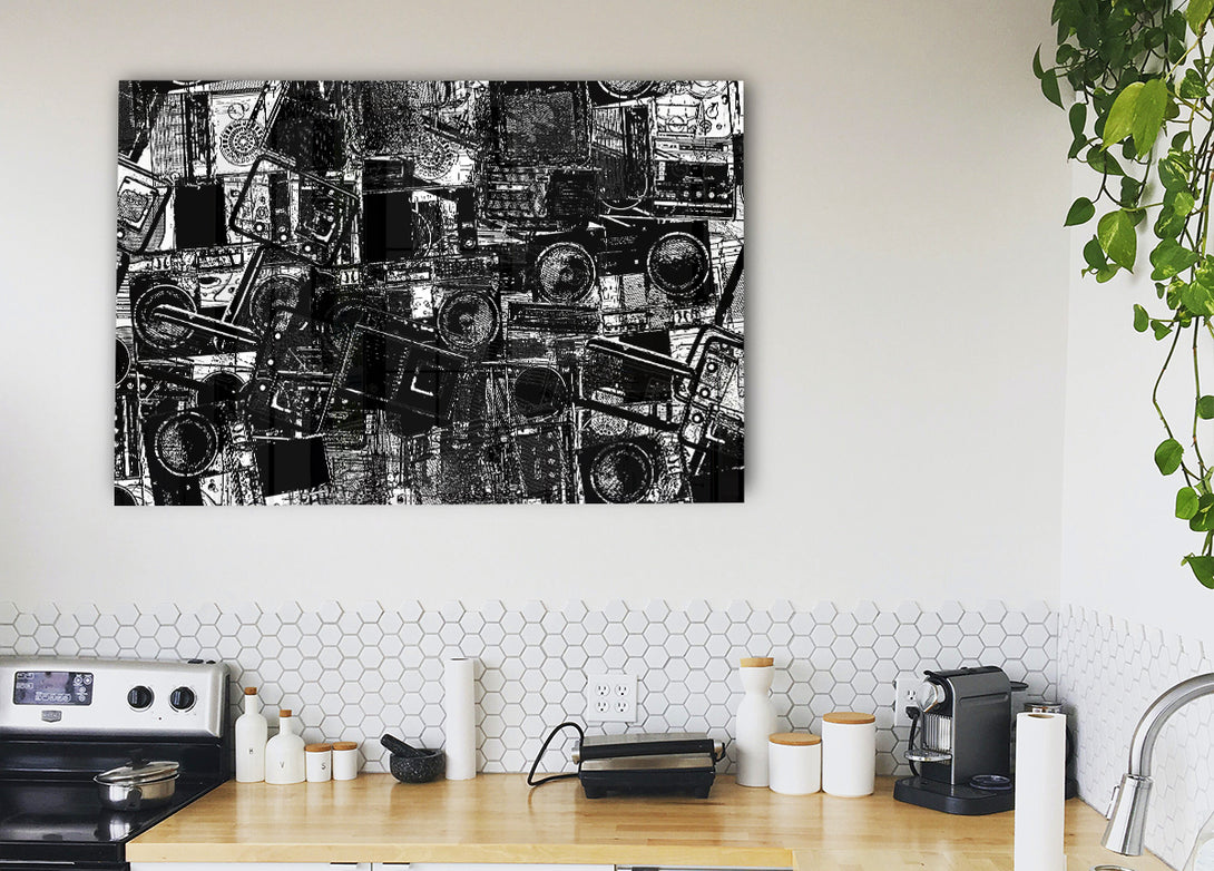 Acryldruck „Speaker Stack“, UV-gedruckt auf 5 mm dickes Acrylglas. Wird mit allem geliefert, was Sie zum Aufhängen an die Wand benötigen.