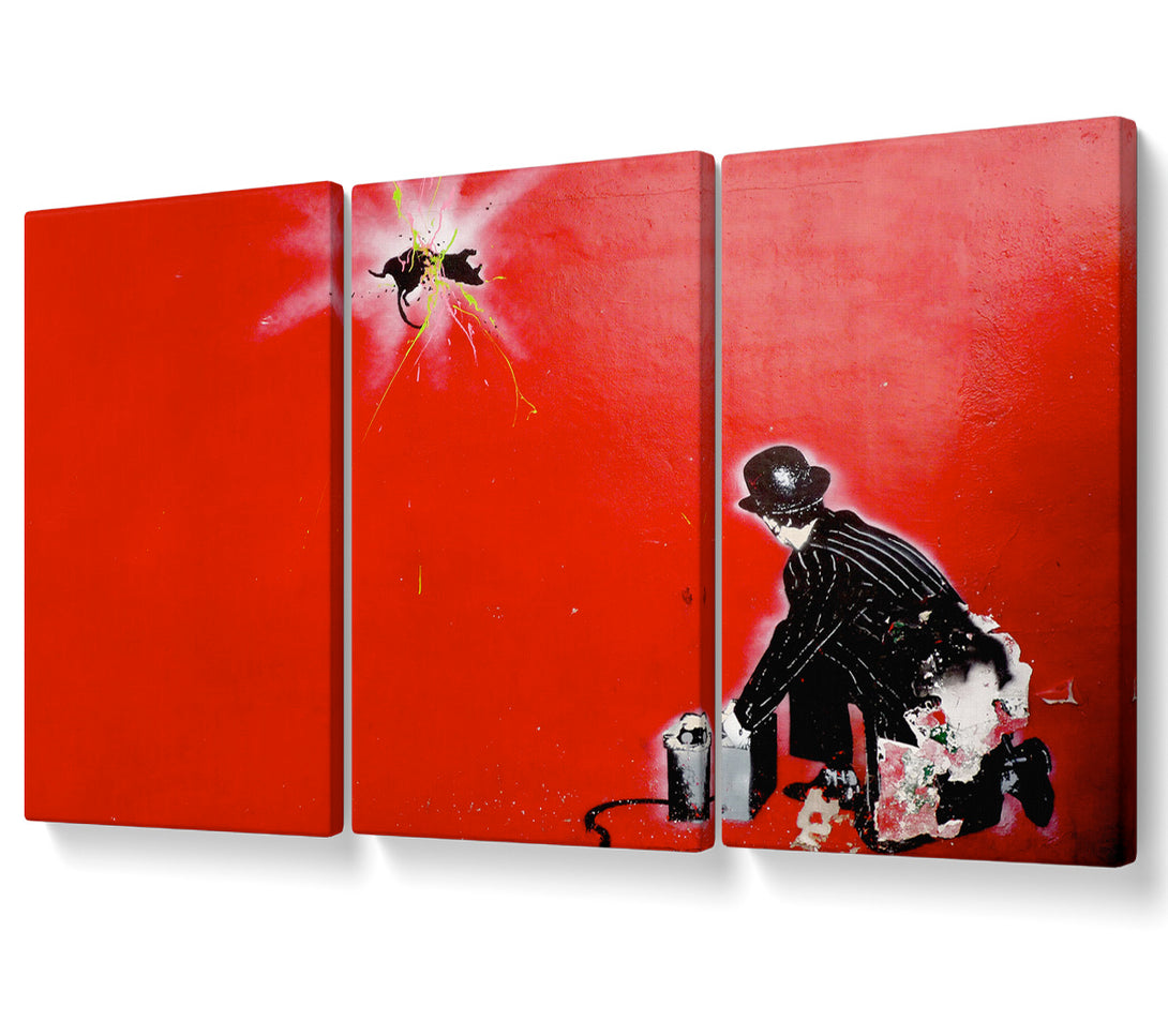 Splatter-Leinwand, gedruckt auf beschichteter Polyester-Leinwand. Auf einem 44-mm-Kastenrahmen montiert, fertig zum Aufhängen.