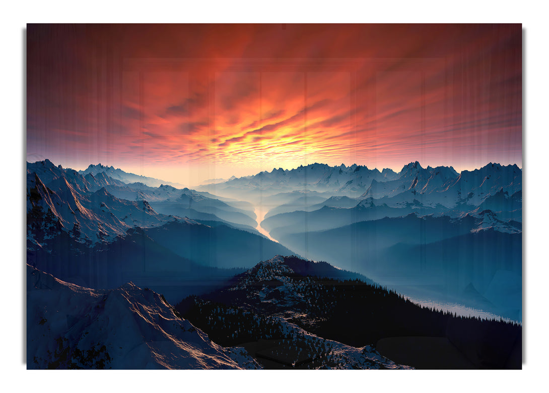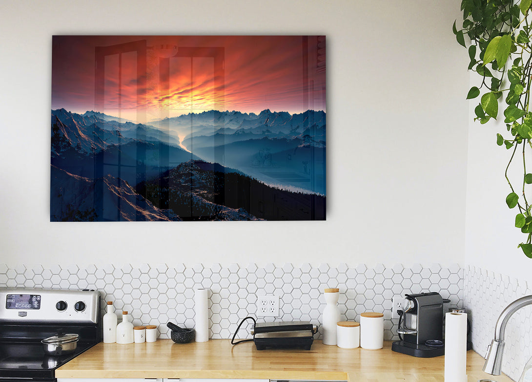Atemberaubender Acryldruck „Schneebedeckte Berge im ersten Licht“, UV-gedruckt auf 5 mm dickes Acrylglas. Wird mit allem geliefert, was Sie zum Aufhängen an Ihre Wand benötigen.