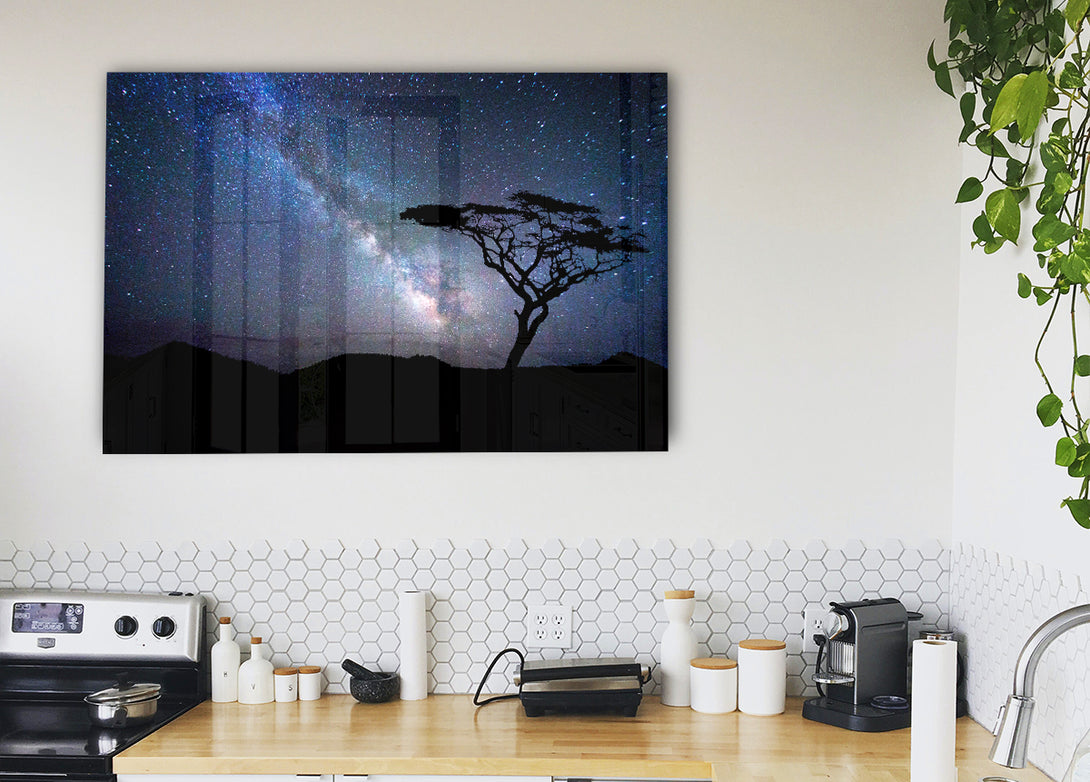 Atemberaubender Acryldruck „Star Night Sky“, UV-gedruckt auf 5 mm dickes Acrylglas. Wird mit allem geliefert, was Sie zum Aufhängen an die Wand brauchen.