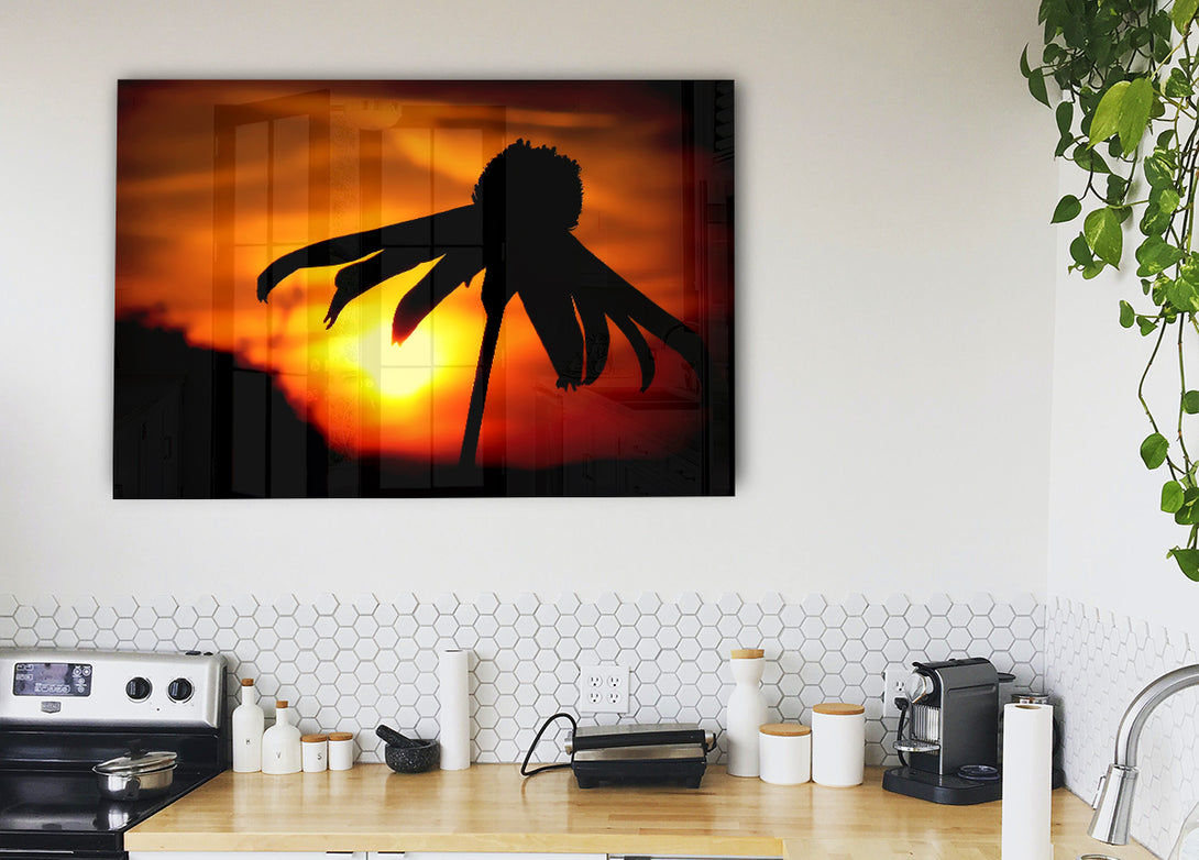 Acryldruck „Sun Behind The Flower“, UV-gedruckt auf 5 mm dickes Acrylglas. Wird mit allem geliefert, was Sie zum Aufhängen an die Wand brauchen.