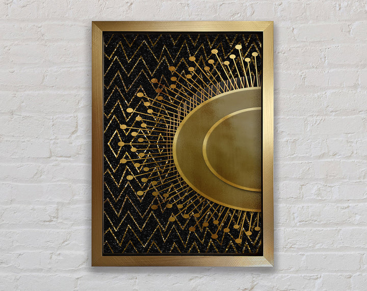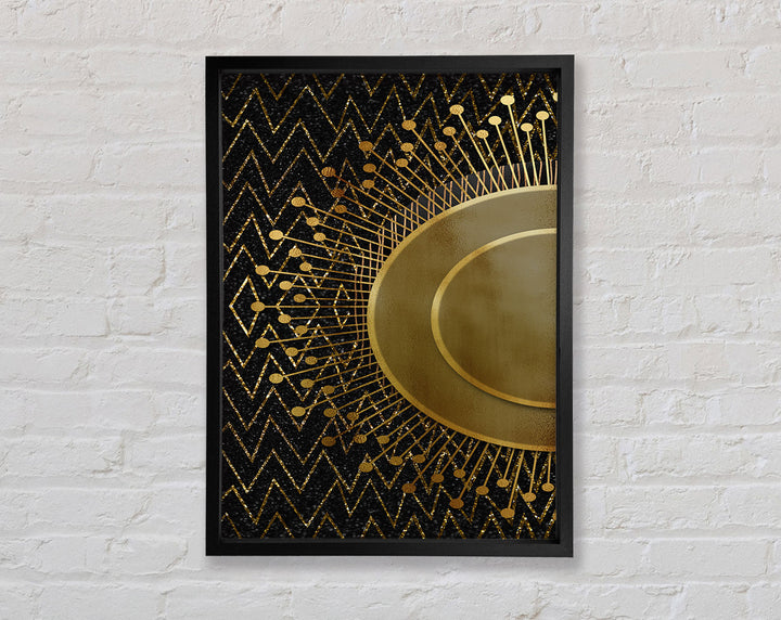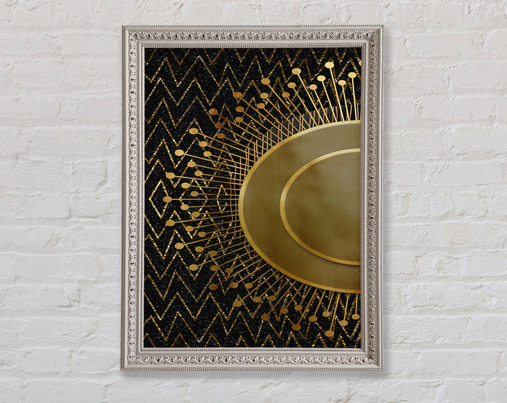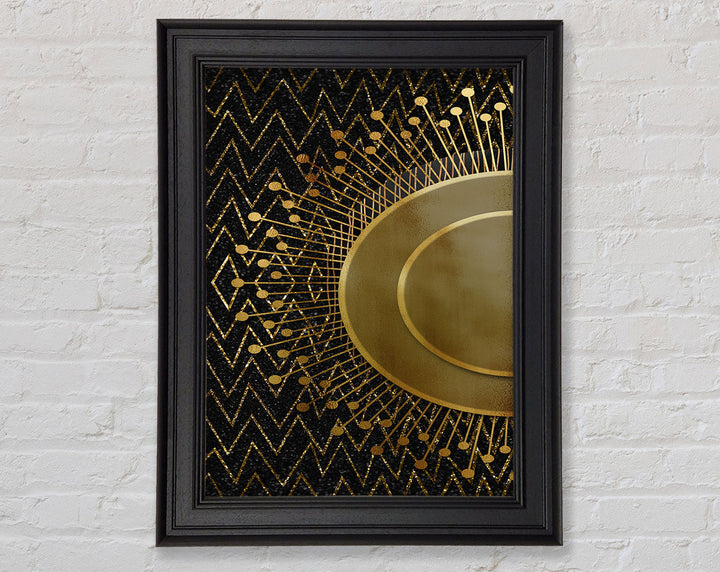 Sun Circle On Black With Zig Zags Framed Print