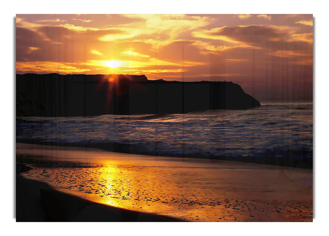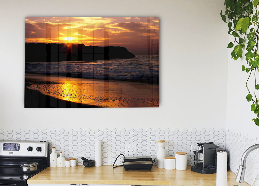 Acryldruck „Sun Down Over Ocean“, UV-gedruckt auf 5 mm dickes Acrylglas. Wird mit allem geliefert, was Sie zum Aufhängen an die Wand brauchen.