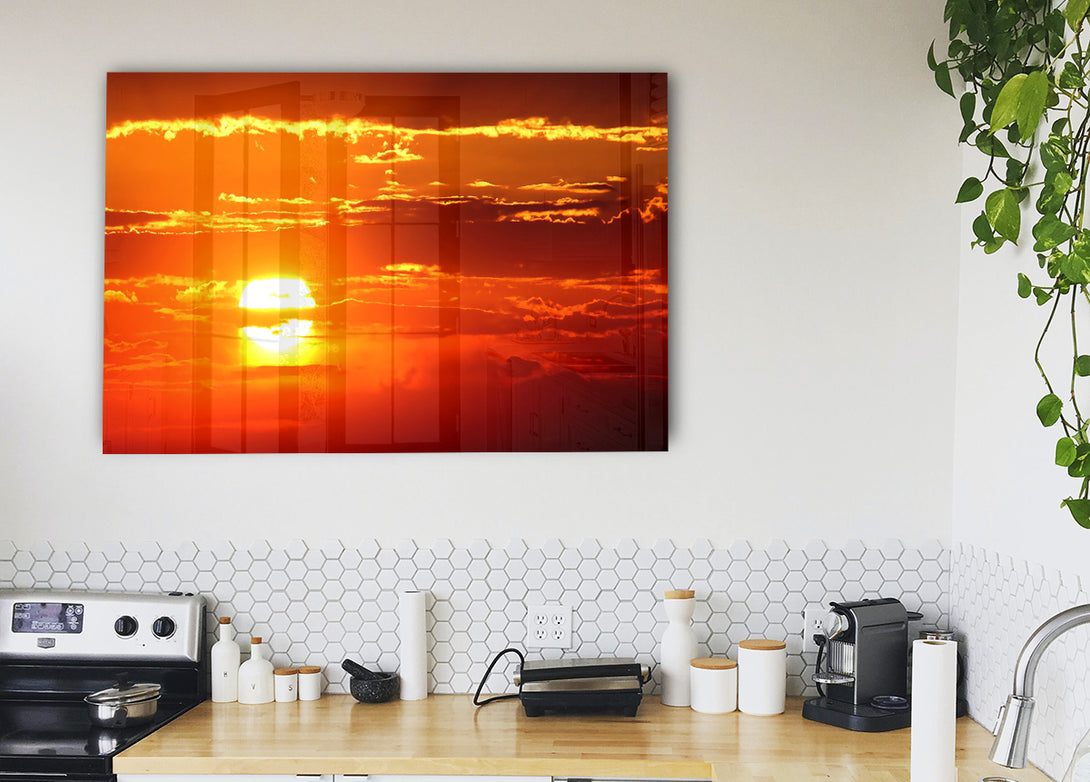 Acryldruck „Sun In The Sky“, UV-gedruckt auf 5 mm dickes Acrylglas. Wird mit allem geliefert, was Sie zum Aufhängen an Ihre Wand benötigen.