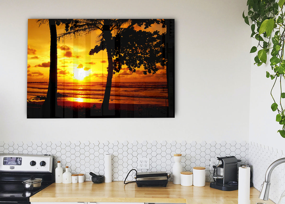Acryldruck „Sun Reflections Over The Beach“, UV-gedruckt auf 5 mm dickes Acrylglas. Wird mit allem geliefert, was Sie zum Aufhängen an die Wand brauchen.