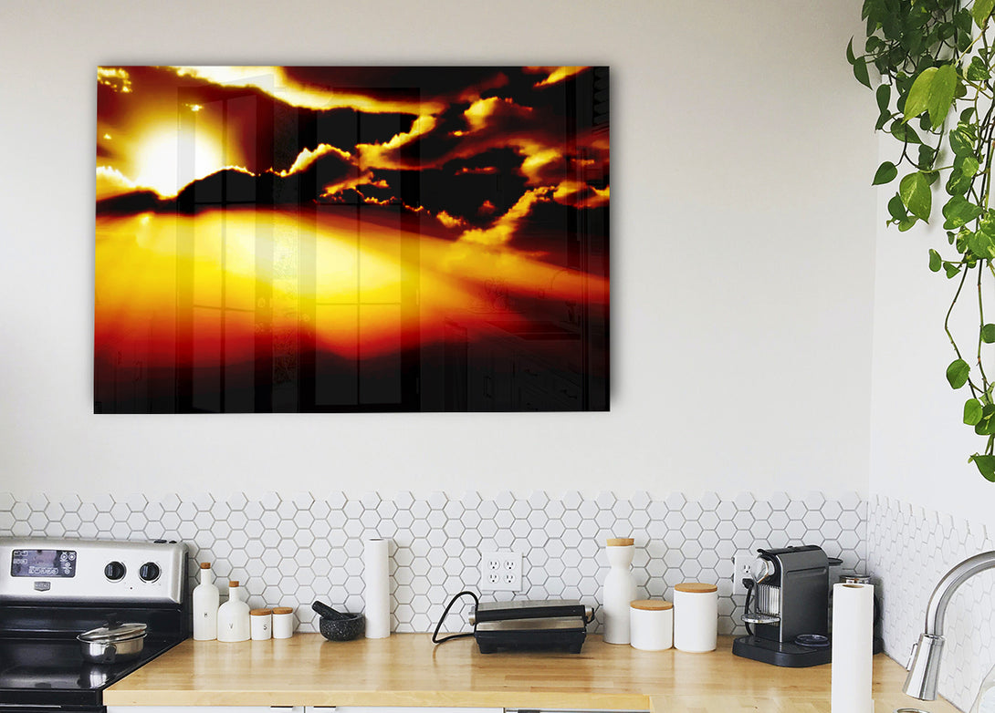 Acryldruck „Sonne durch die Wolken 04“, UV-Druck auf 5 mm dickes Acrylglas. Wird mit allem geliefert, was Sie zum Aufhängen an Ihre Wand benötigen.
